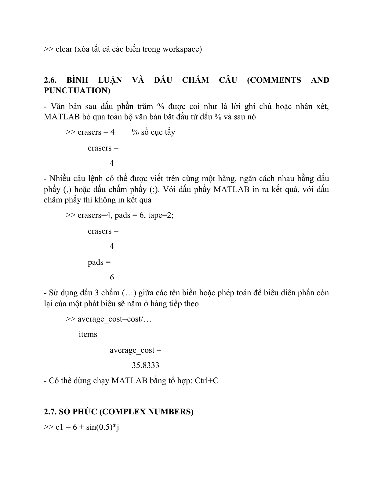 - dấu chấm phẩy (;) ra lệnh cho MATLAB tiến hành tất cả các thao tác cần thiết