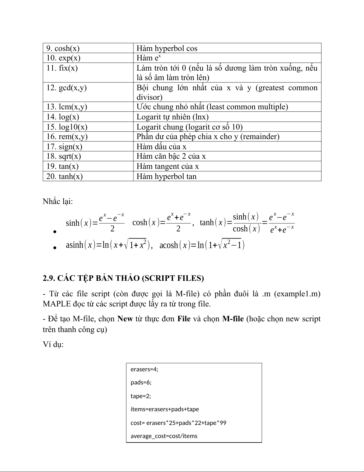 Ước chung nhỏ nhất (least common multiple) 14. log(x) Logarit tự nhiên (lnx) 15. log10(x)