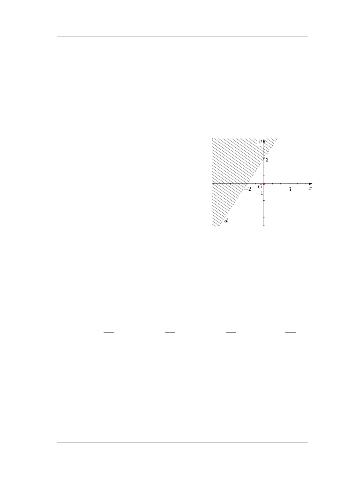(b) Miền nghiệm của (2) là nửa mặt phẳng bờ là đường thẳng d : 2x − y + 4 = 0 chứa điểm (−1; 5) 2 Trần Văn Cường 0837 308 348
