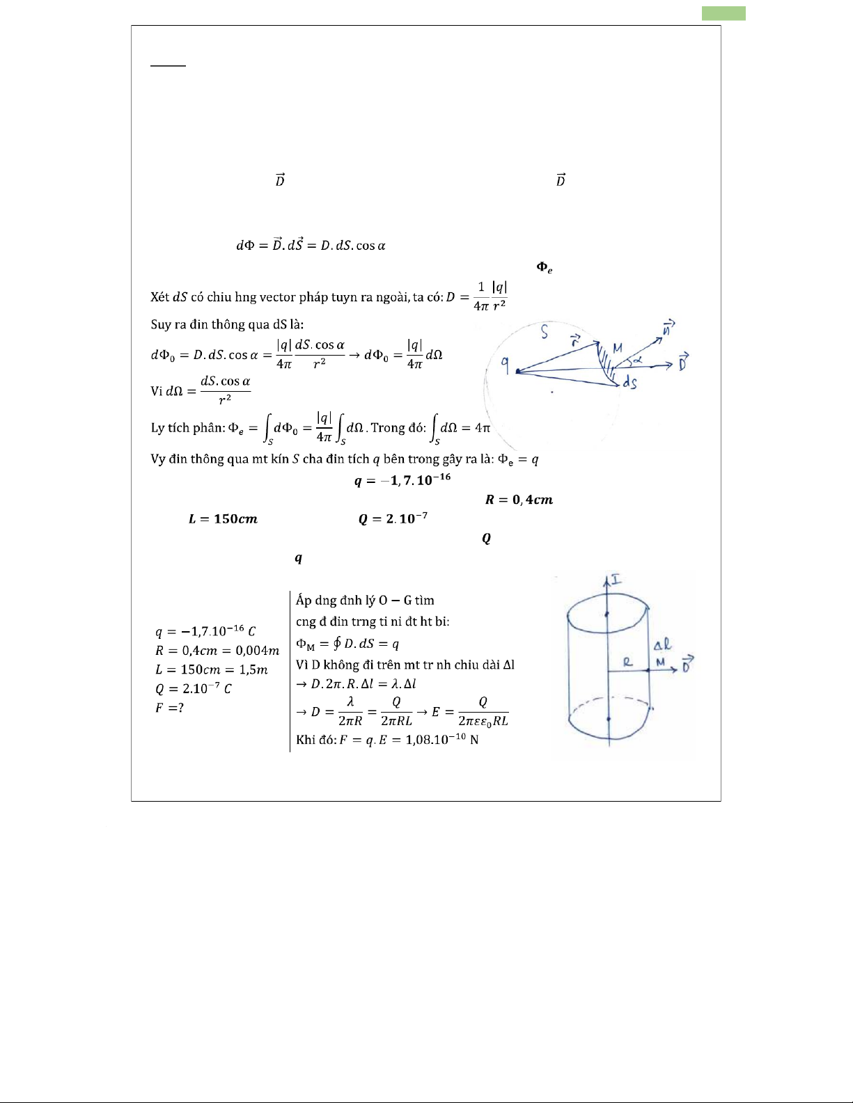 Xét điểm M nằm trên đáy hình trụ (mặt Gauss) cắt vuông góc mặt phẳng Q.
