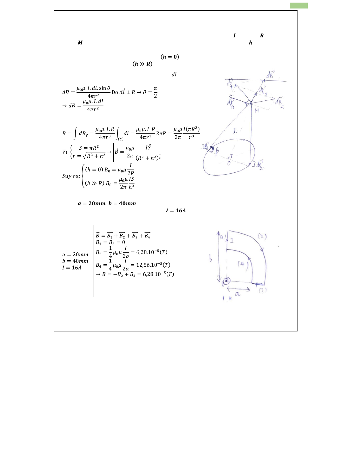 1. Xác định vector cảm ứng từ gây bởi dòng điện tròn có cường độ , bán kính , tại điểm