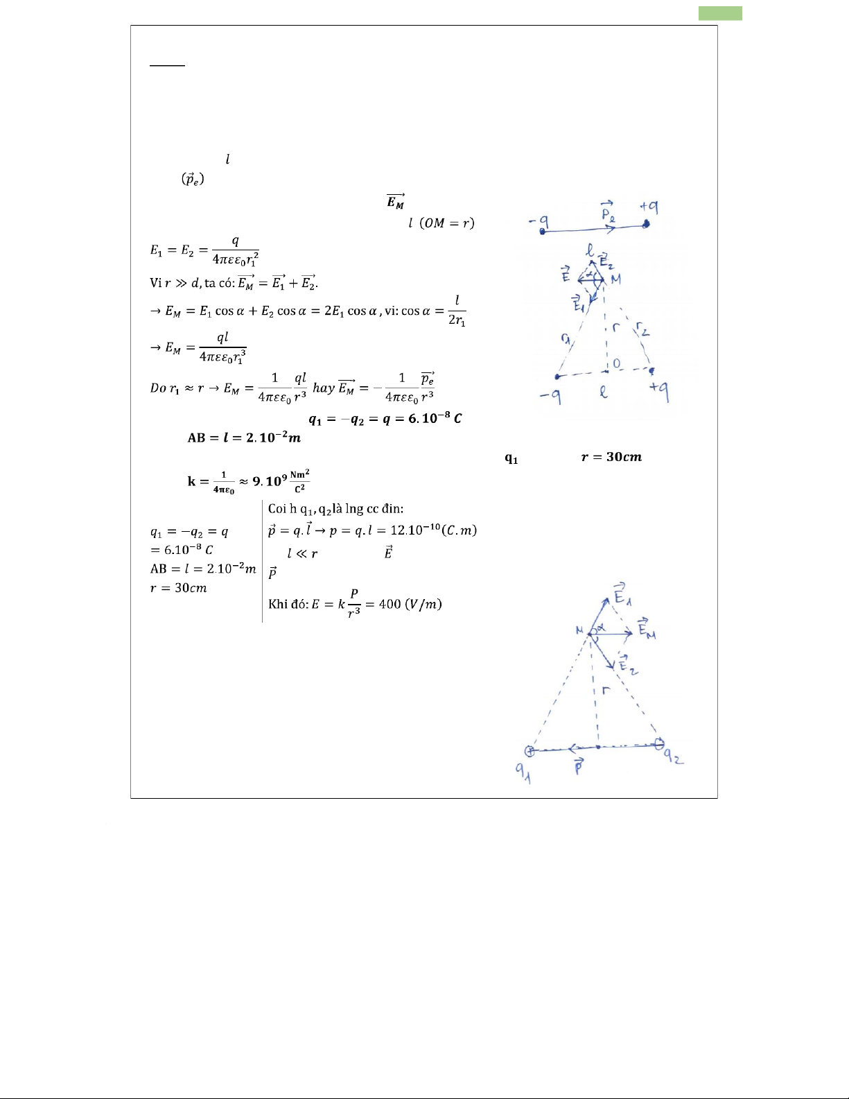 của lưỡng cực một khoảng r khá lớn so với khoảng cách giữa hai điện tích.