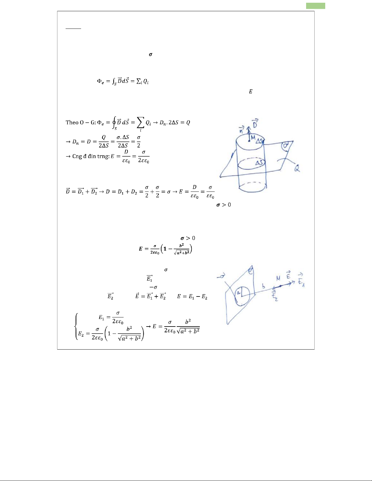 2. Một mặt phẳng tích điện đều với mật độ điện mặt