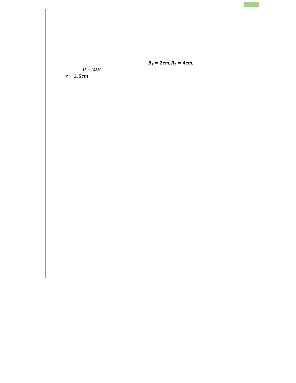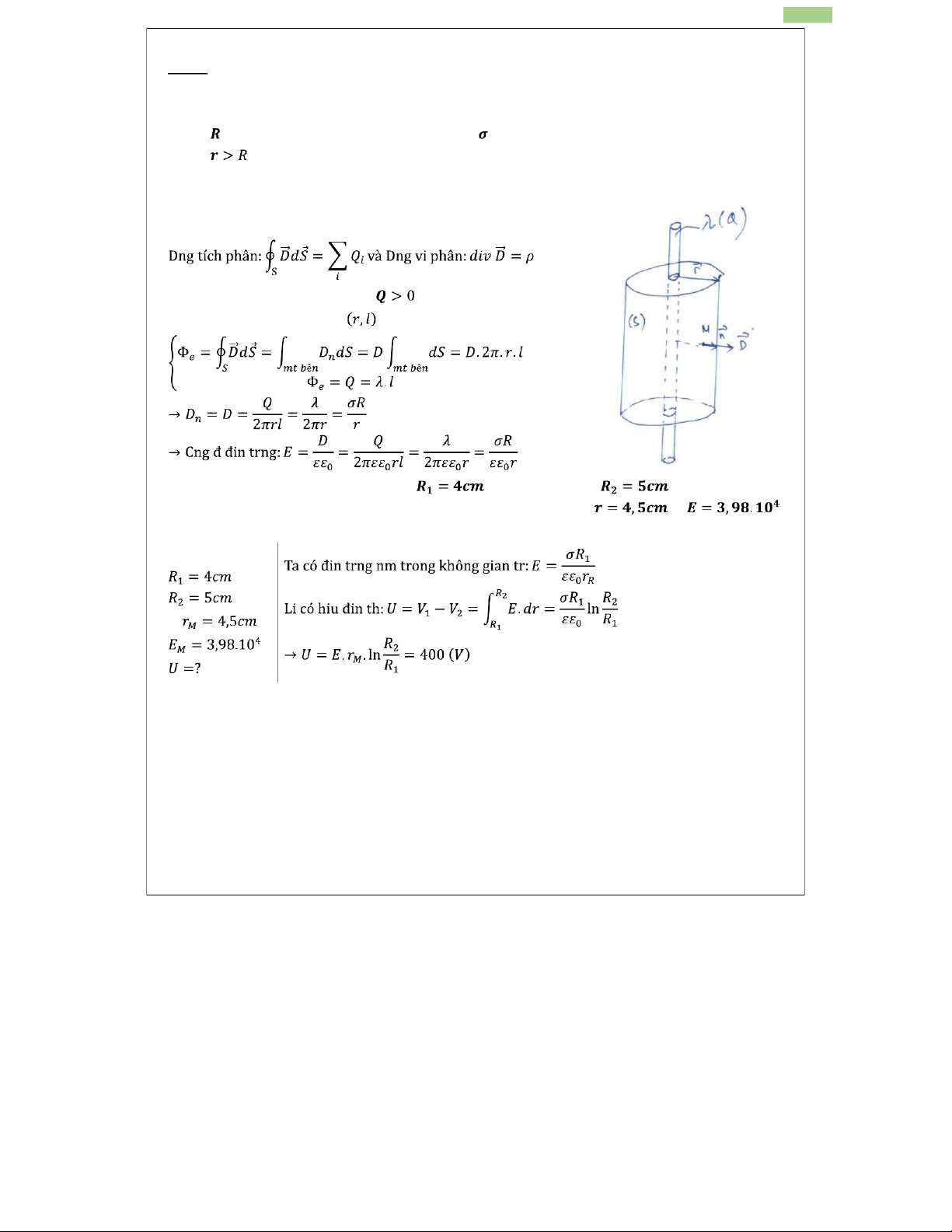 2. Một tụ điện trụ có bán kính , bán kính ngoài . Cường độ điện