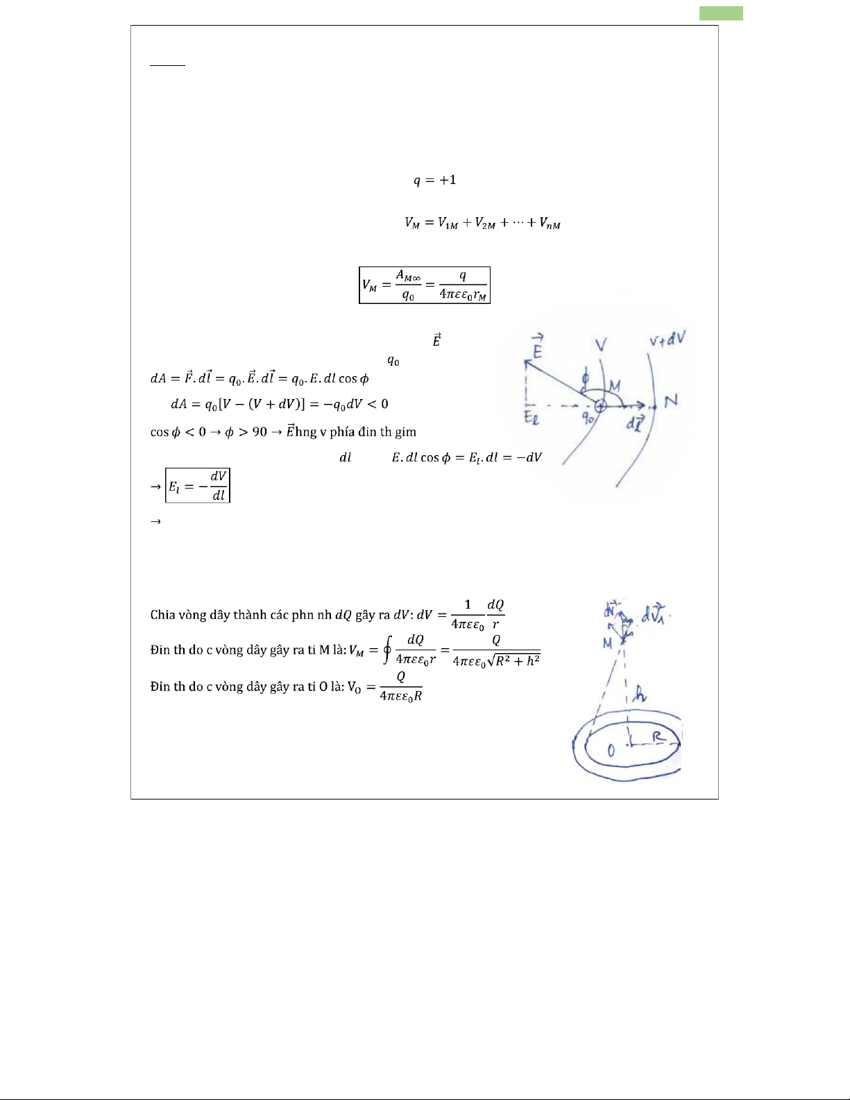 điểm M cường độ điện trường và Mặt phẳng tròn