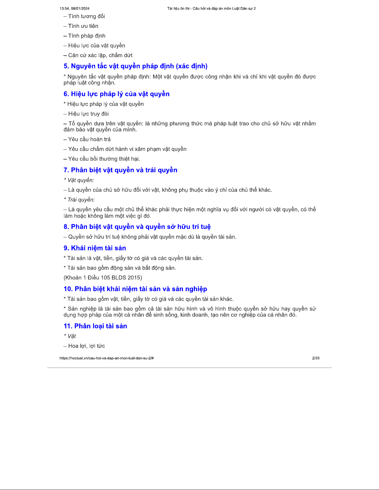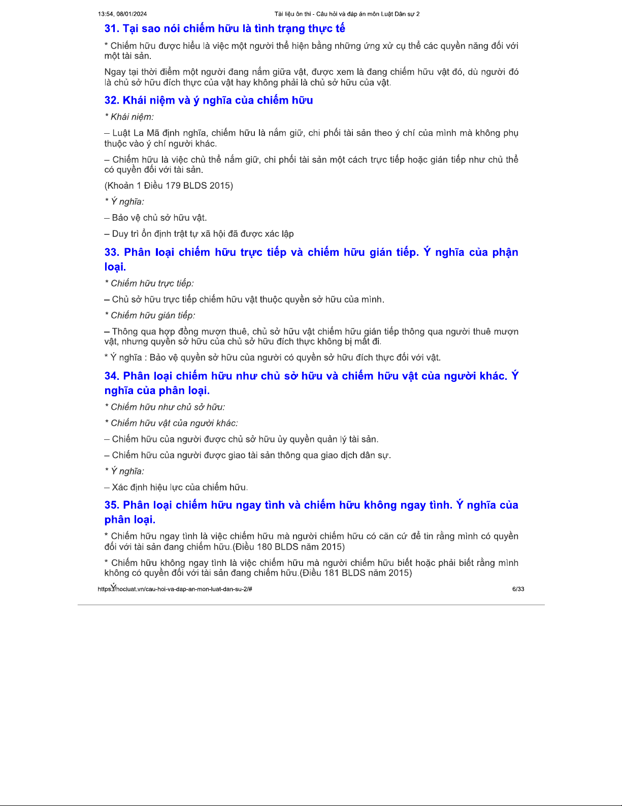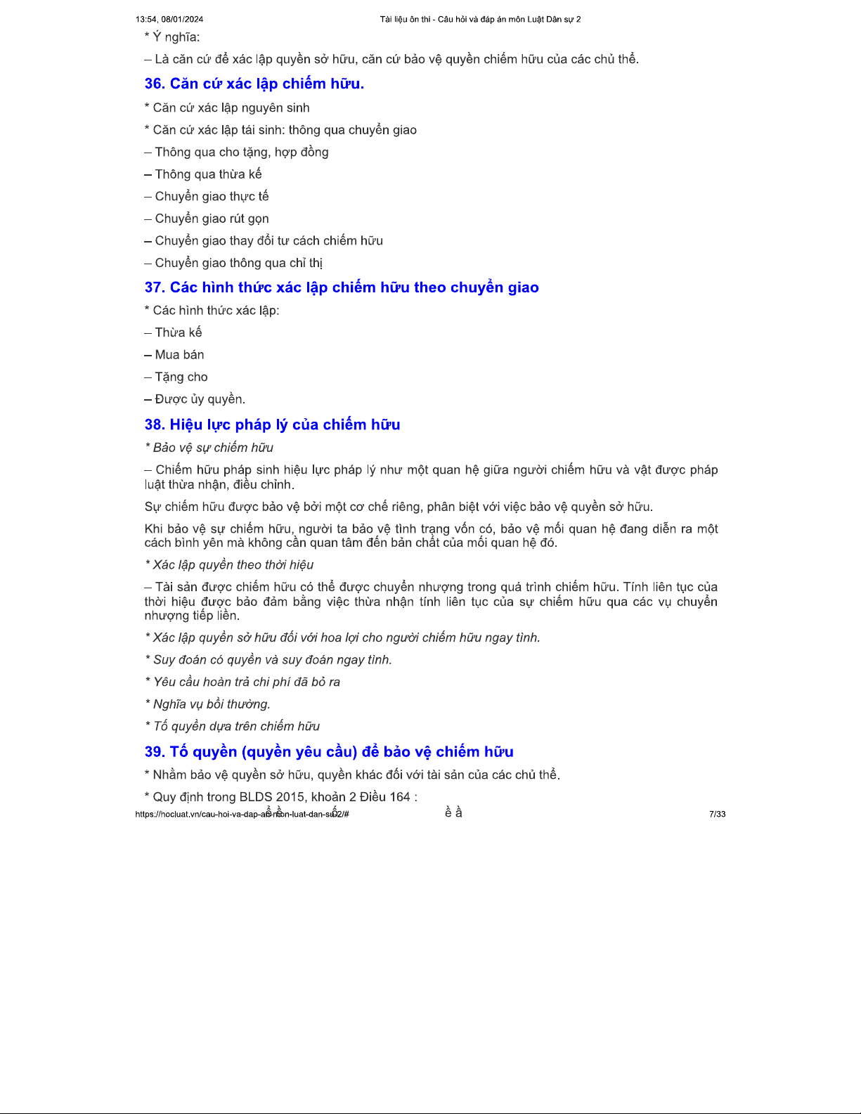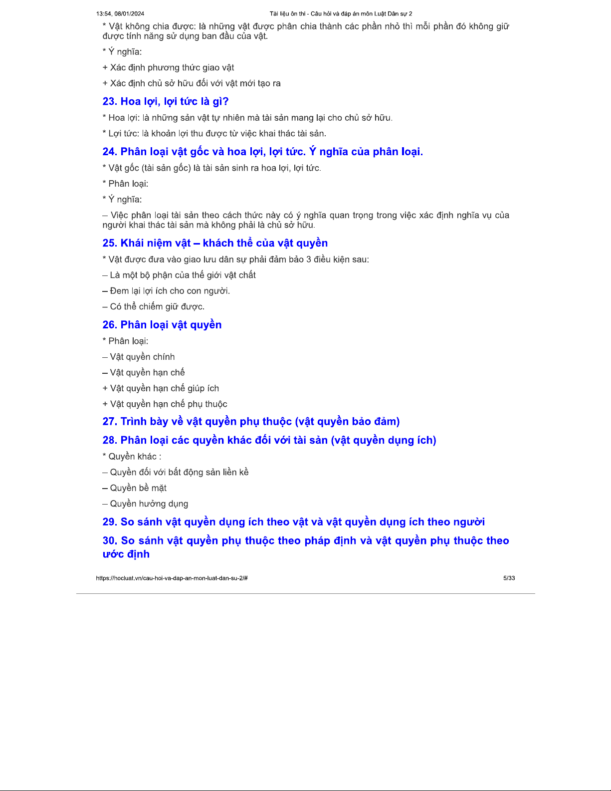 Tài liệu ôn thi - Câu hỏi & đáp án Luật Dân sự 2 (Kỳ thi)