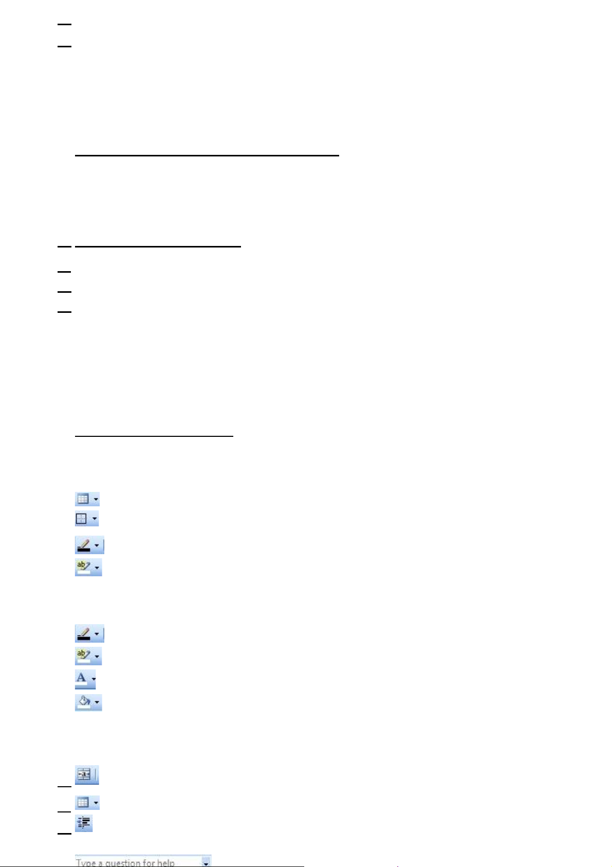 của Excel và không có trên màn hình làm việc của Word? A) Thanh công cụ định dạng.