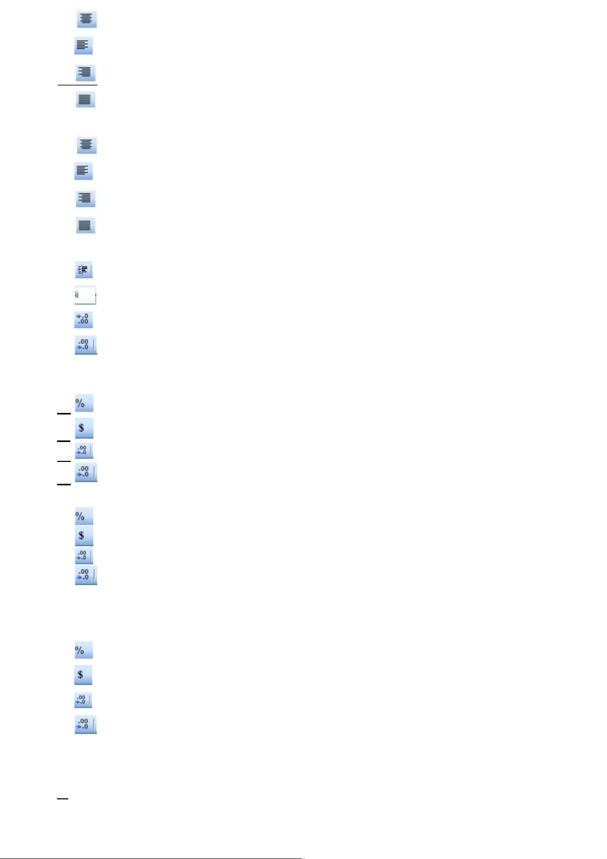 Câu hỏi 12. Trong bảng tính Microsoft Excel, để căn chỉnh lề trái trong ô ta nháy nút lệnh: A) B) C) D)