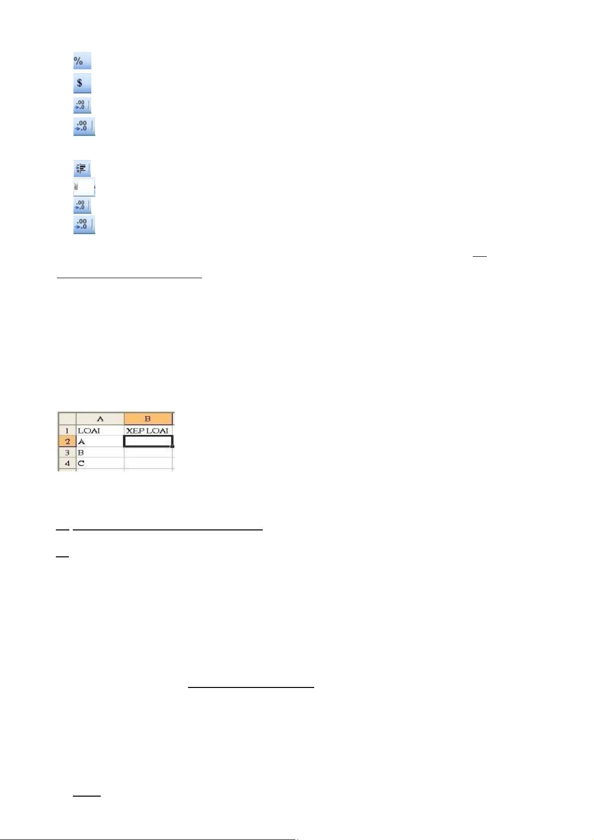 Câu hỏi 17. Trong bảng tính Microsoft Excel, để định dạng $ cho số ta nháy nút lệnh: A) B) C) D)