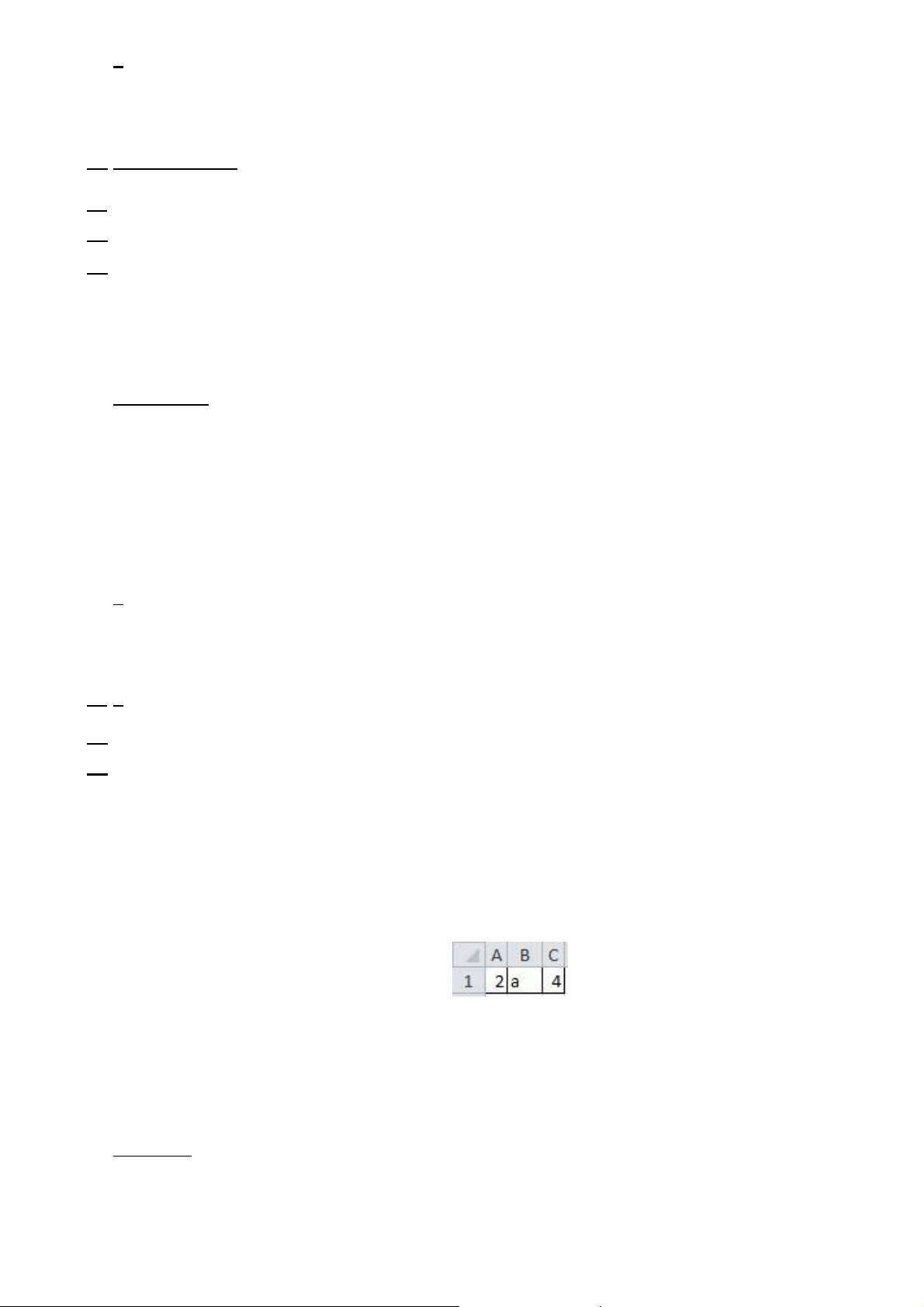 Câu hỏi 1. Trong Excel, dữ liệu trong ô tính có thể là: A) Dữ liệu số