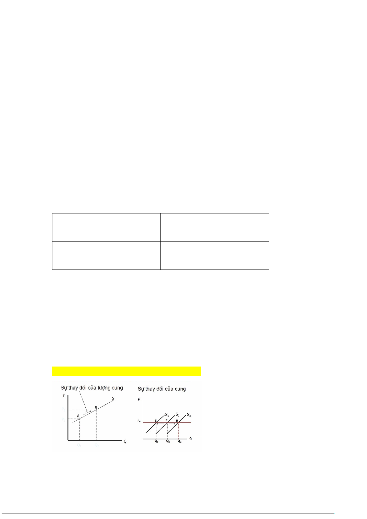 * Sự thay đổi của cung và lượng cung: