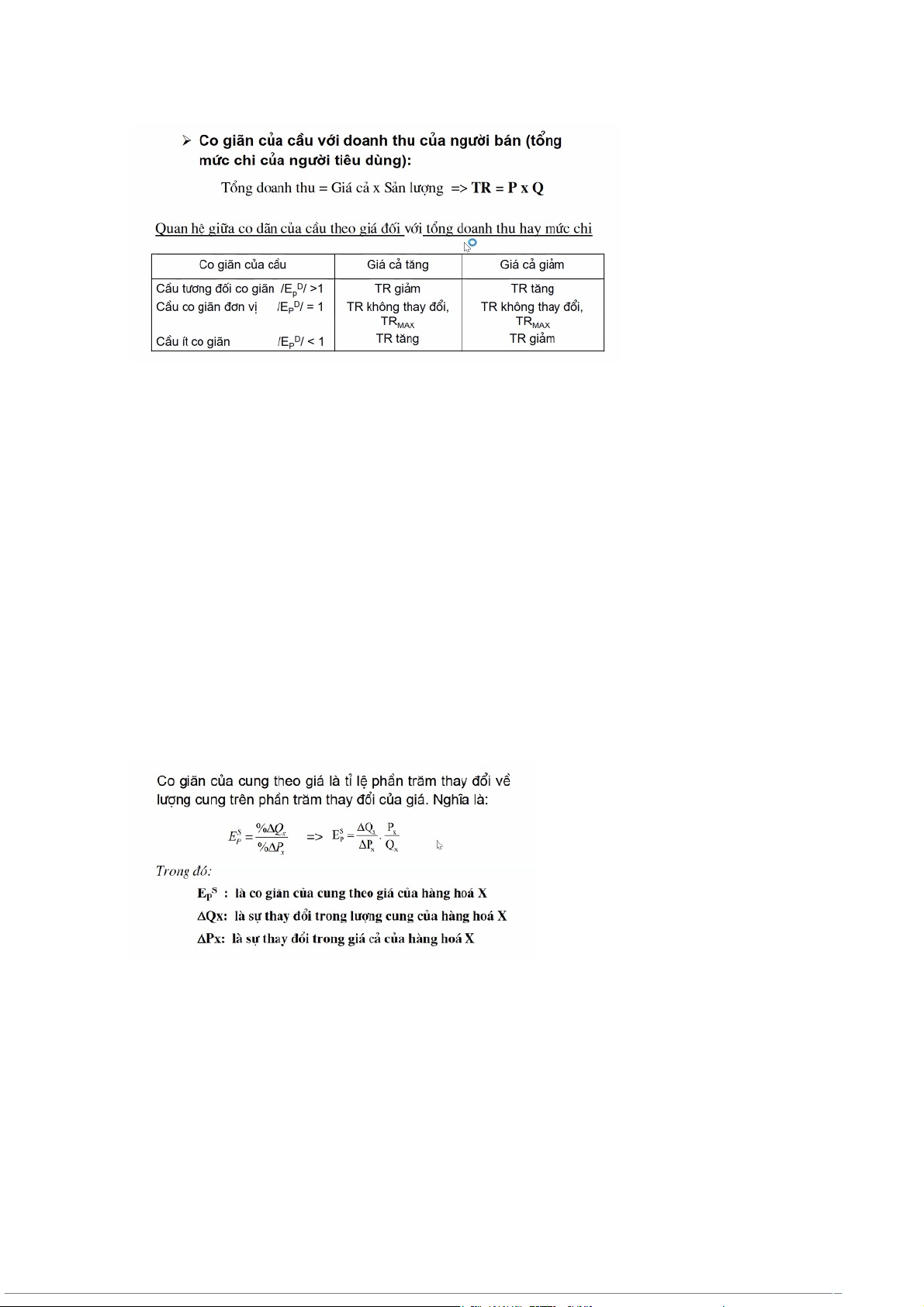 - Hệ số co giãn của cung theo giá: