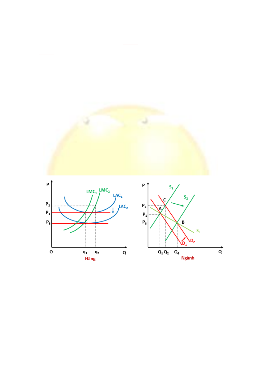 2. Trong thị trường cạnh tranh hoàn hảo, đường cung dài hạn cùa ngành dốc xuống đối với ngành có chi phí giảm.