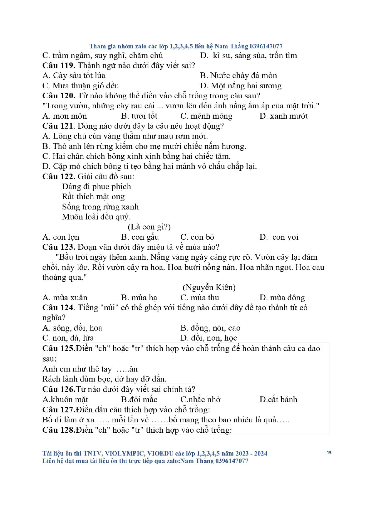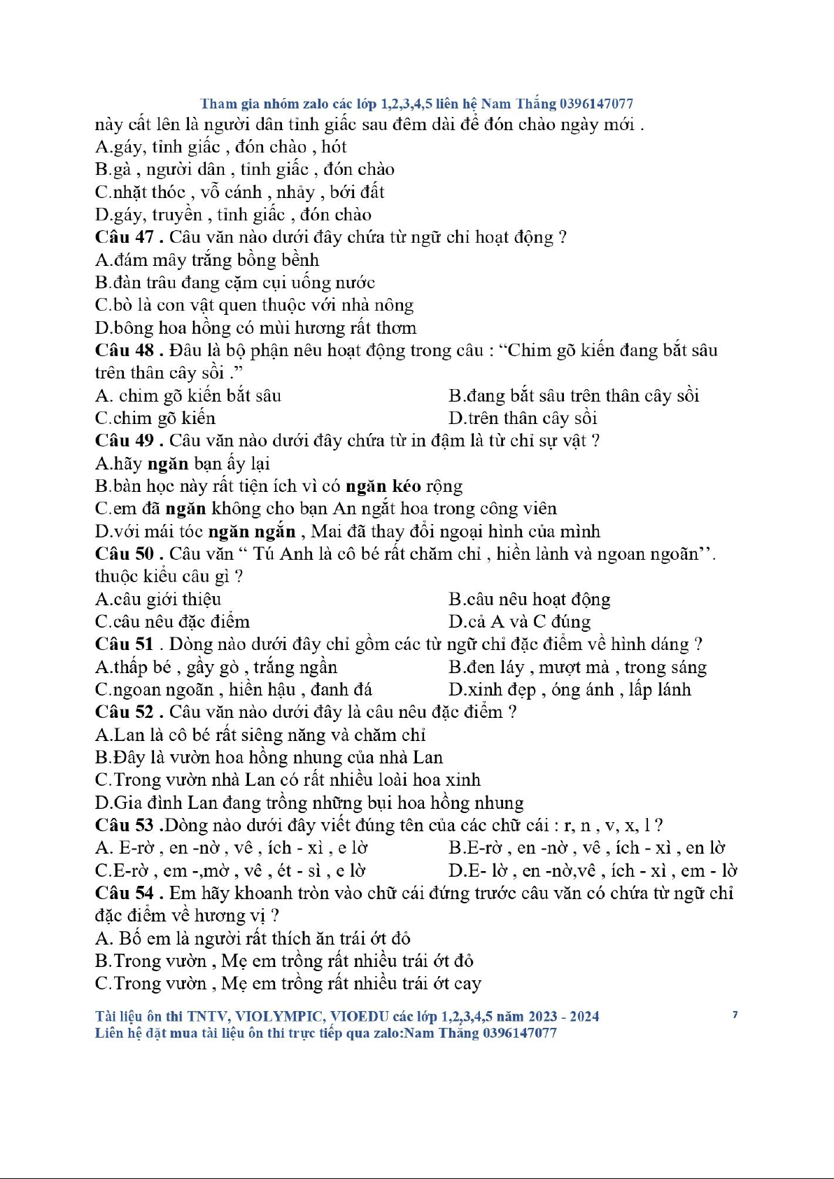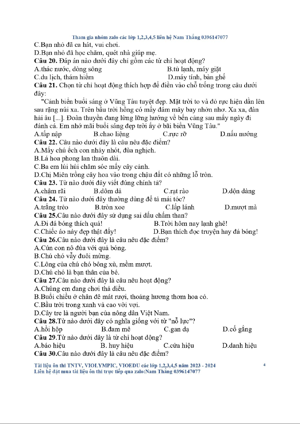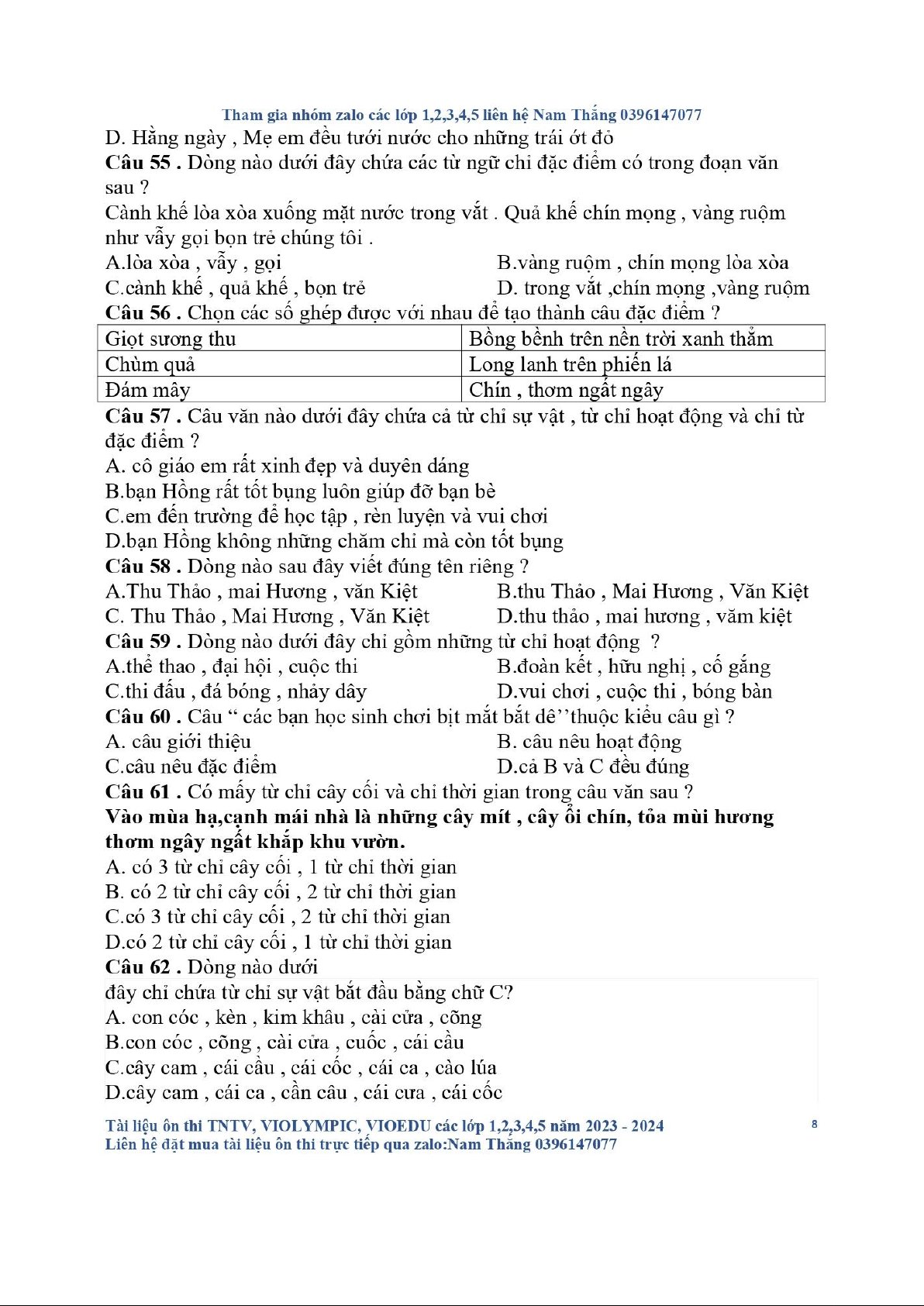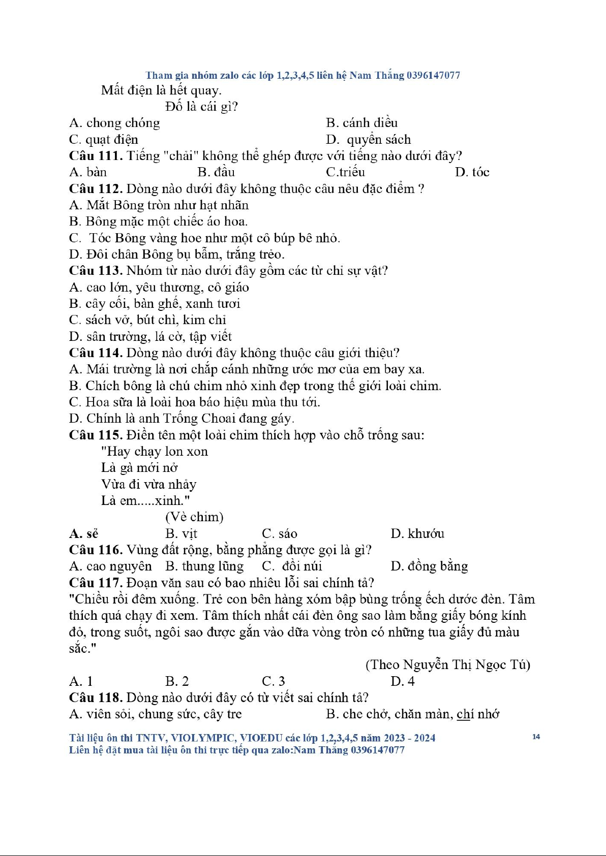 Tài liệu ôn thi trạng nguyên, vioedu lớp 2 cấp Huyện