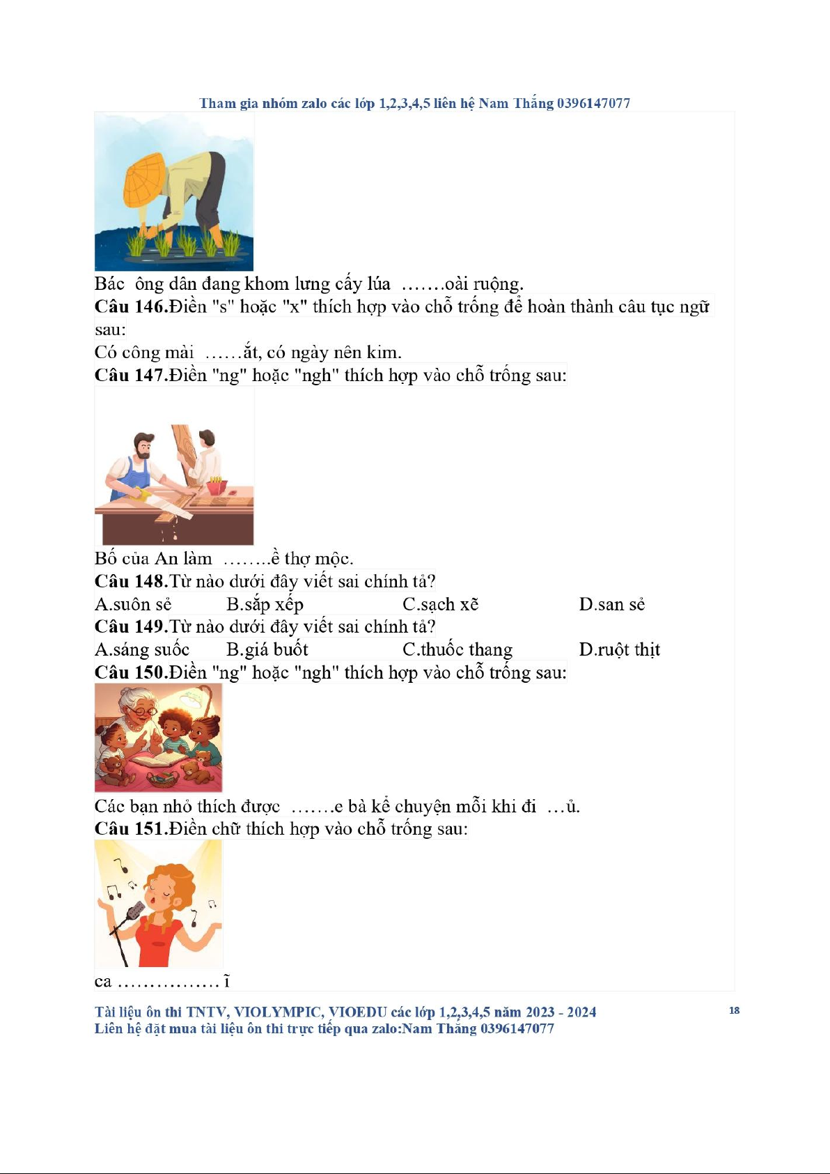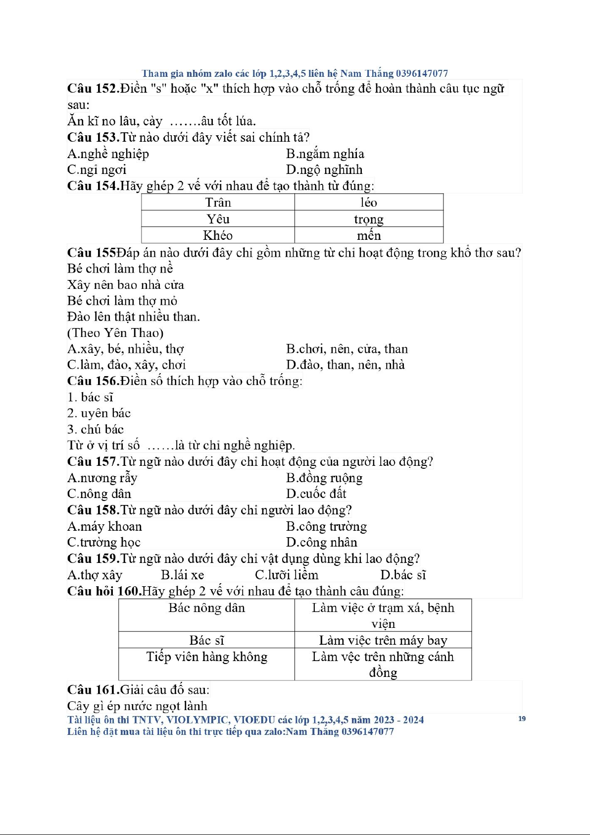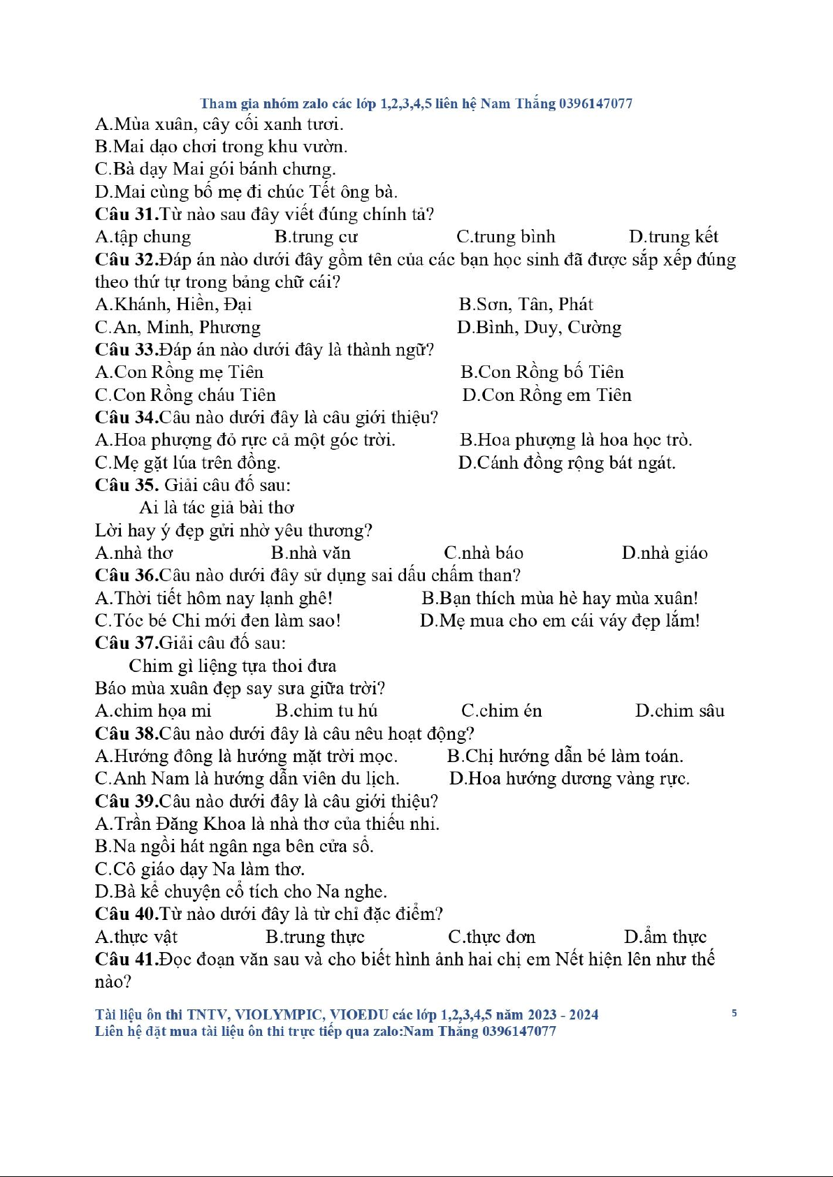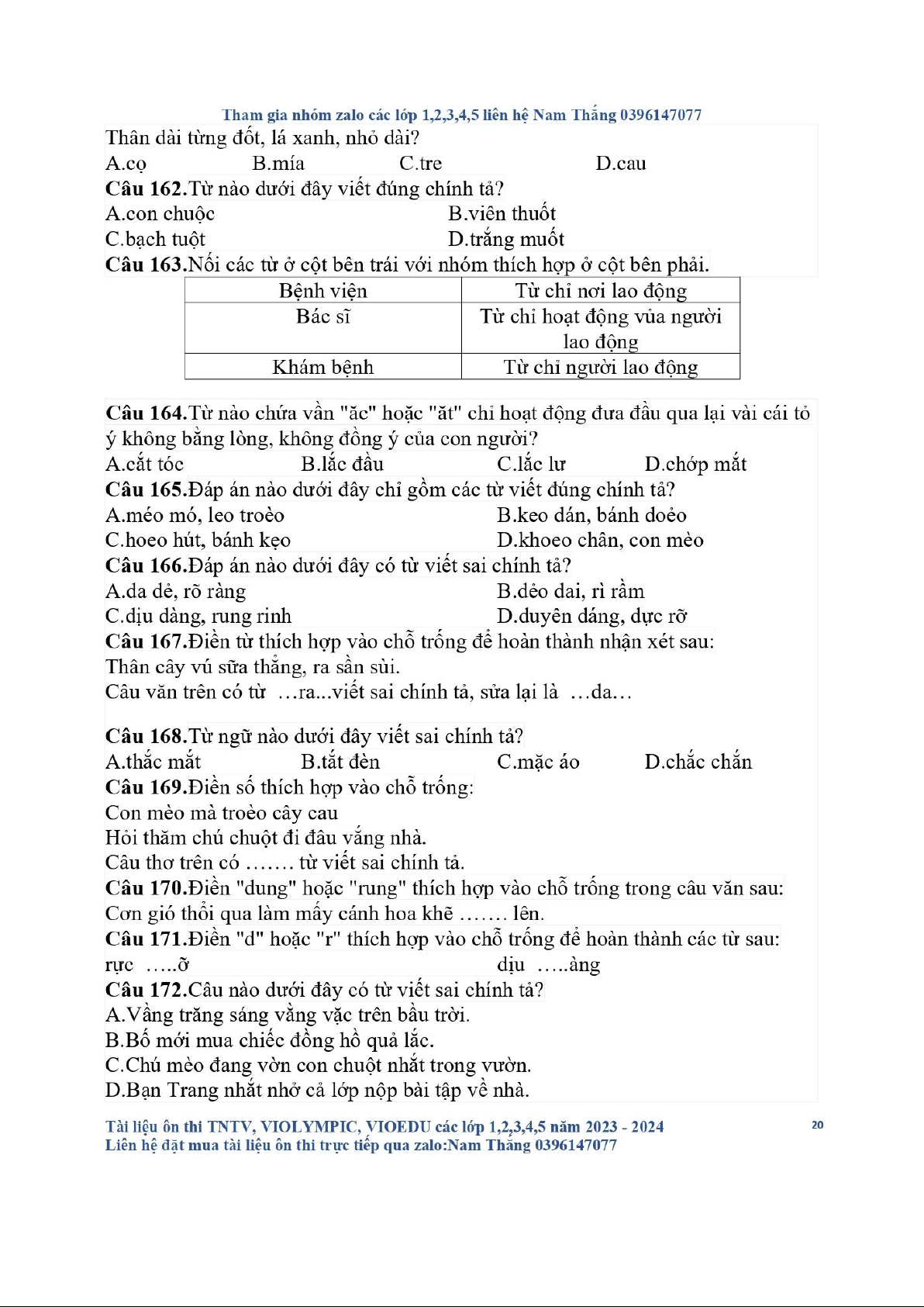 Tài liệu ôn thi trạng nguyên, vioedu lớp 2 cấp Huyện