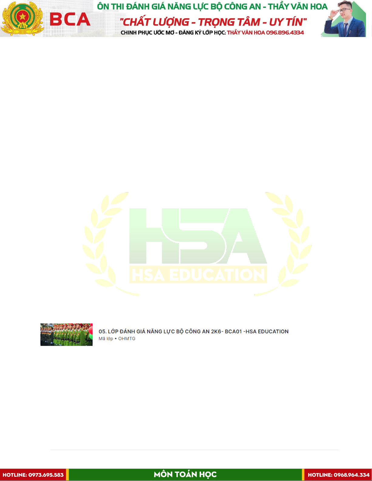 TRUNG TÂM LUYỆN THI QUỐC GIA HSA EDUCATION
