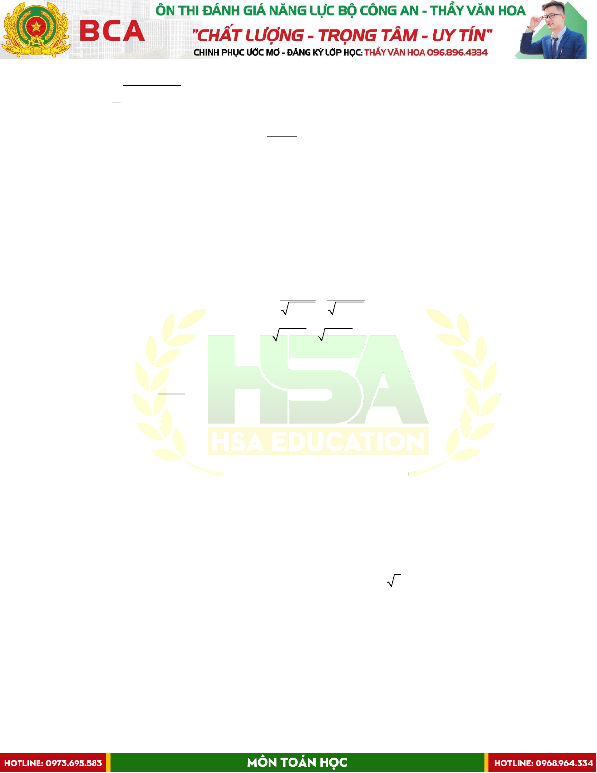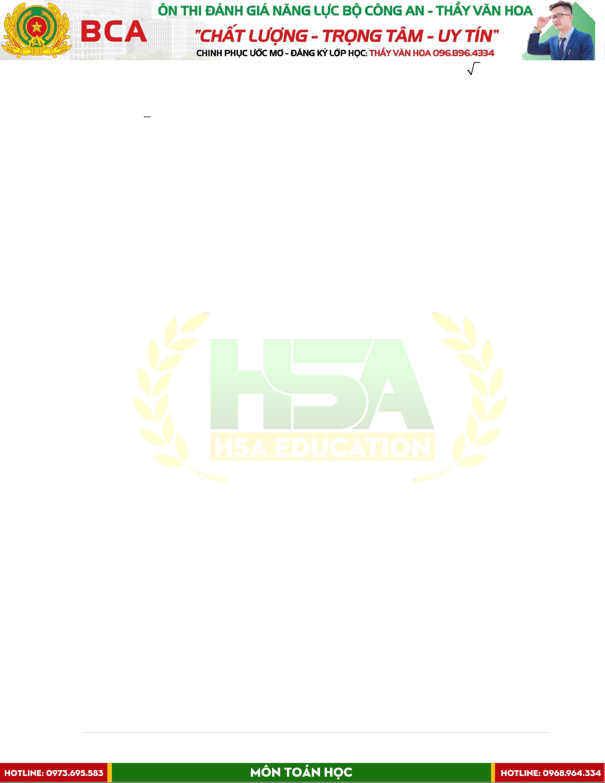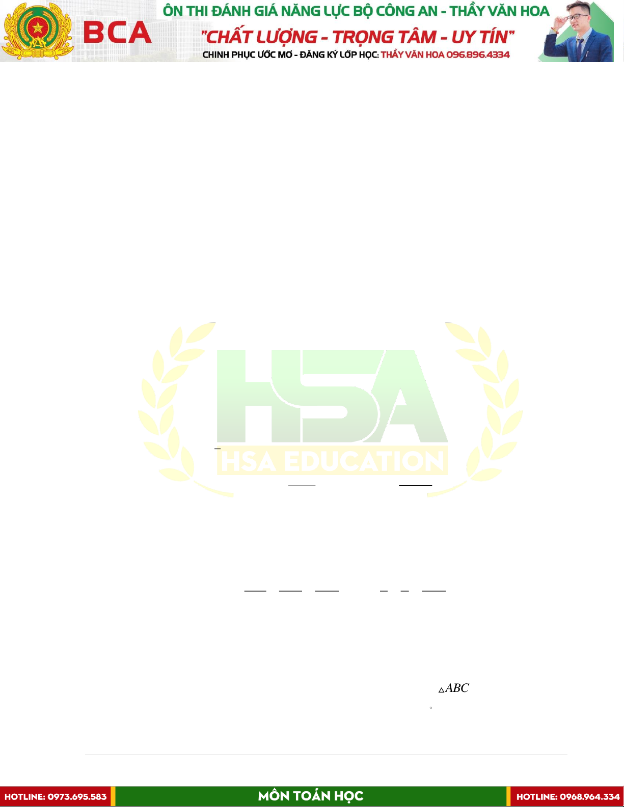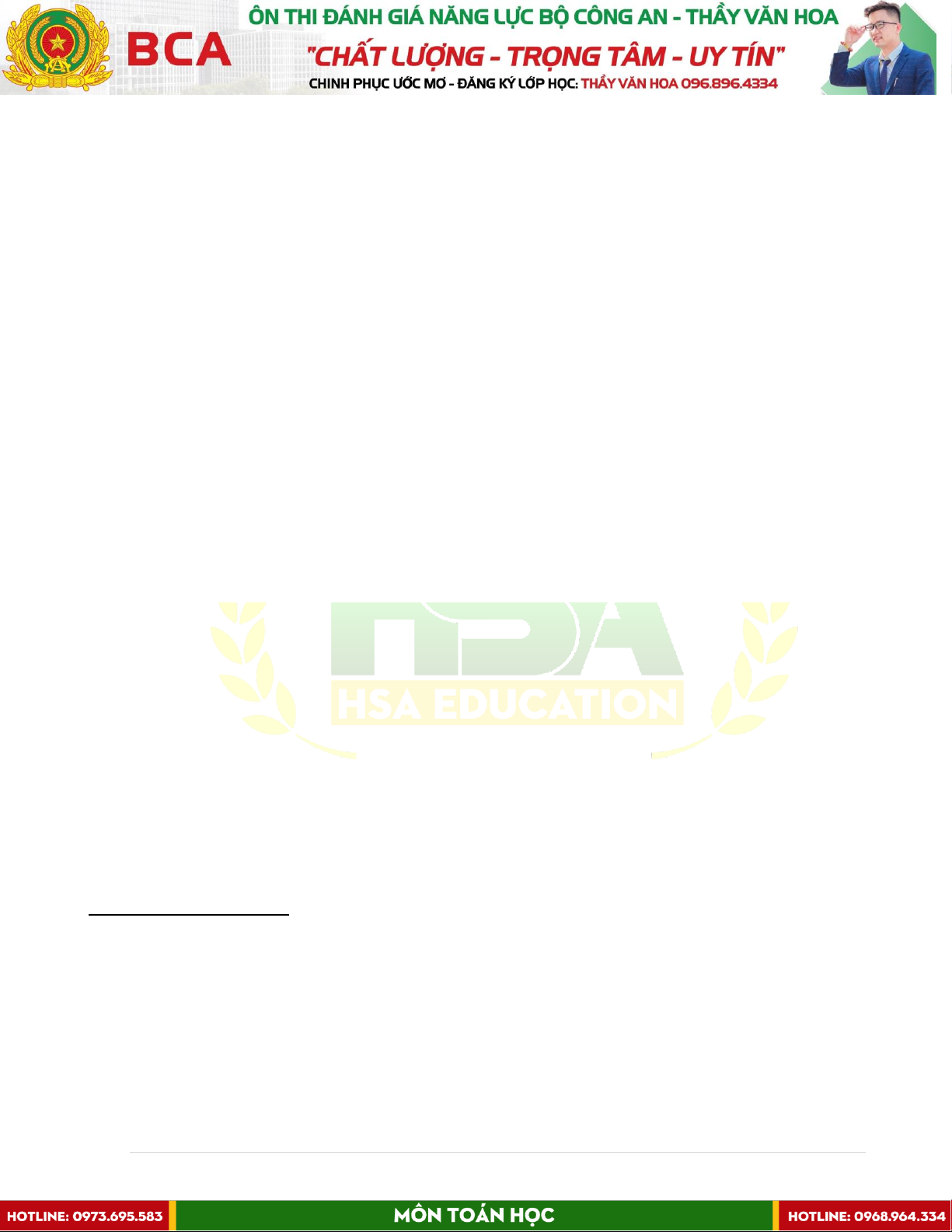 TÀI LIỆU KHÓA ÔN ĐÁNH GIÁ NĂNG LỰC BỘ CÔNG AN Bộ môn: TOÁN HỌC