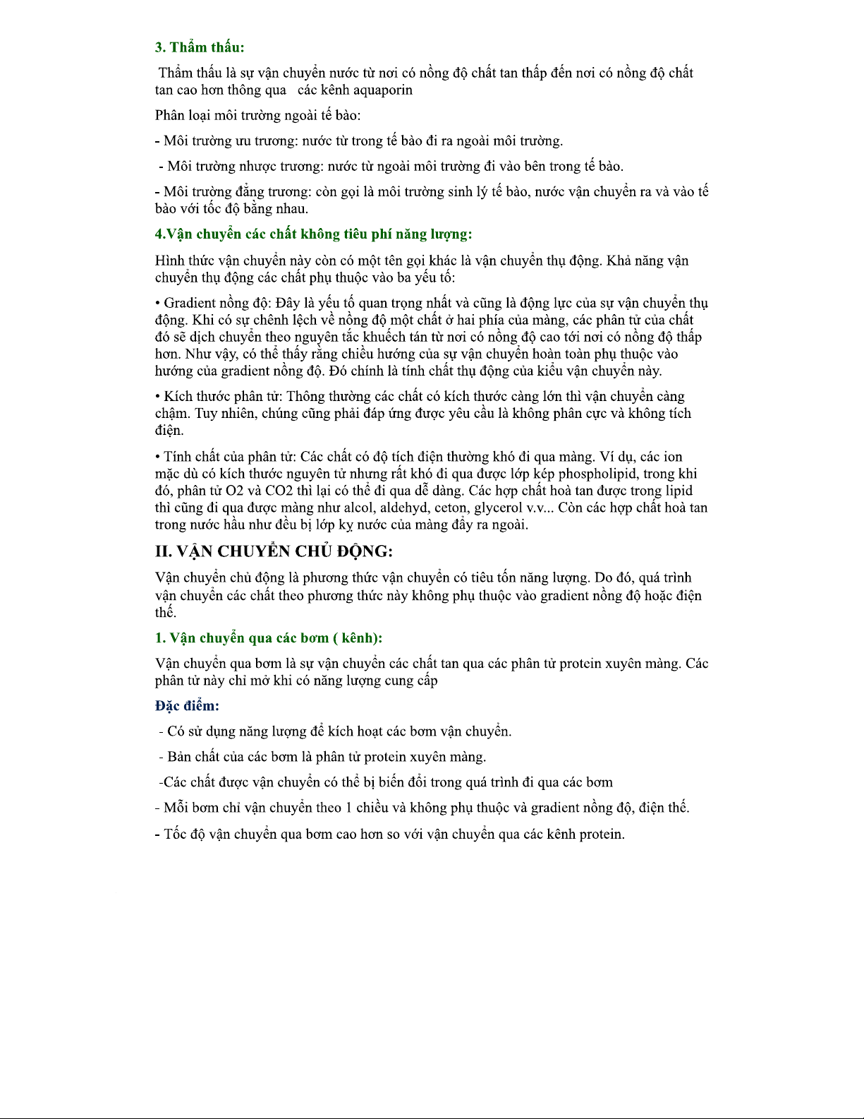 TÀI LIỆU SINH HỌC: VẬN CHUYỂN CÁC CHẤT QUA MÀNG (SINH 101)