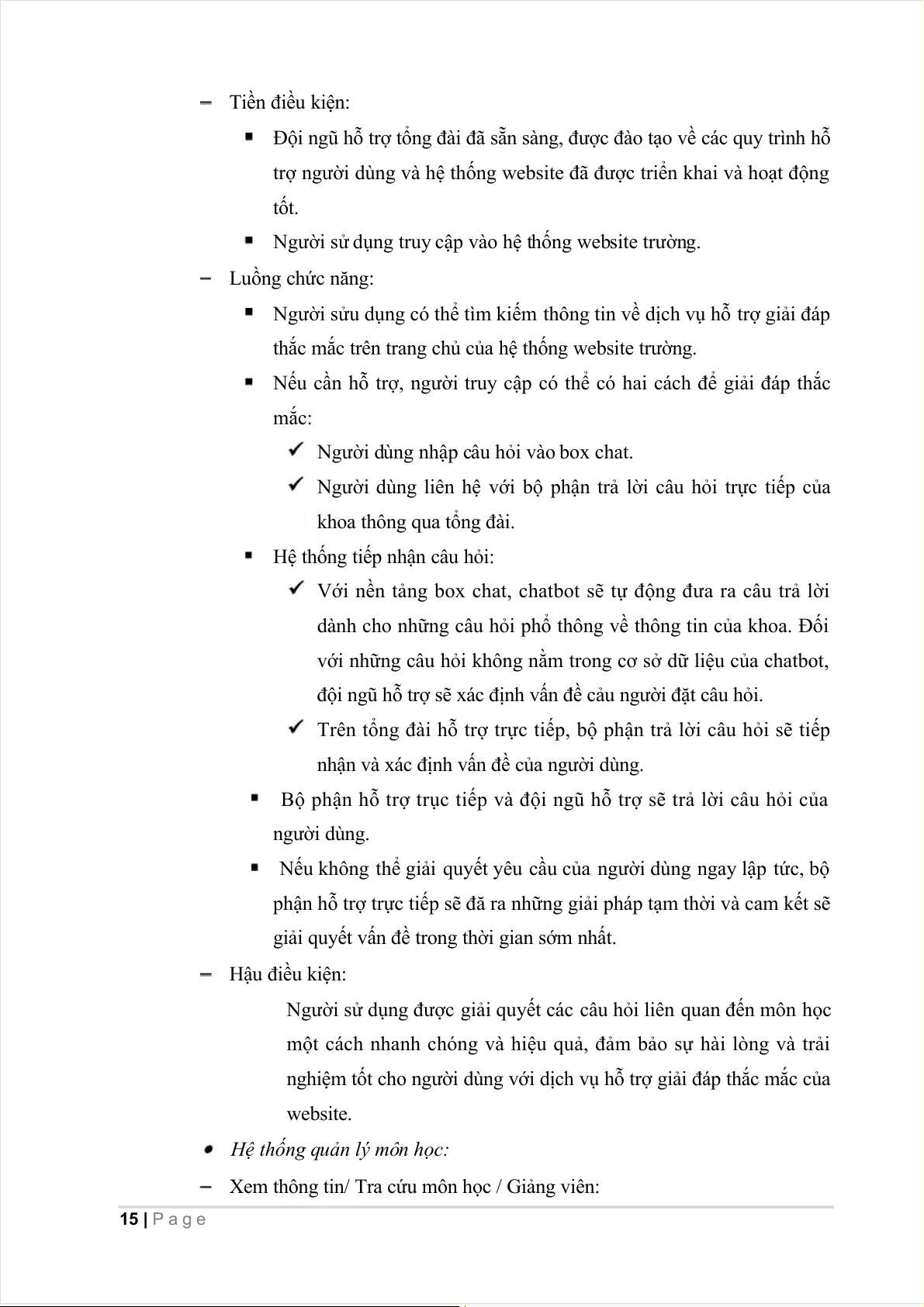 dụng website. Boxchat sẽ được hỗ trợ trả lời bằng chatbot và phòng đào tạo. 14 | P a g e Tiền điều kiện: