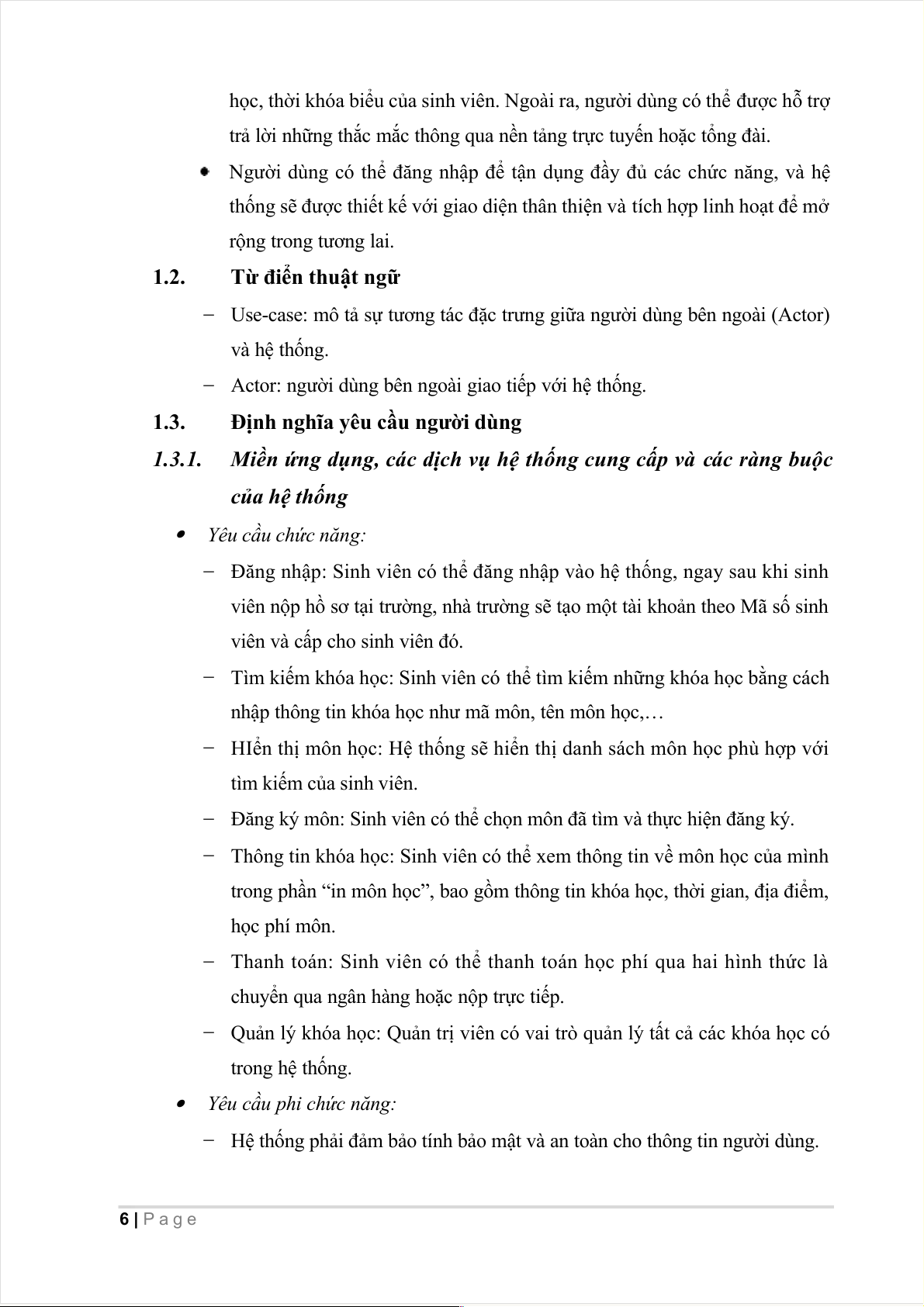 1.3. ĐỊNH NGHĨA YÊU CẦU NGƯỜI DÙNG..............................................................................6 1.3.1.