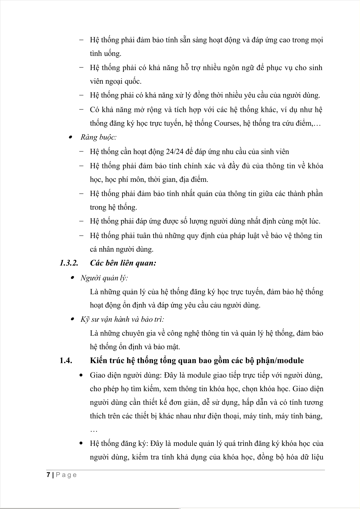 Miền ứng dụng, các dịch vụ hệ thống cung cấp và các ràng buộc của hệ thống.6 1.3.2.