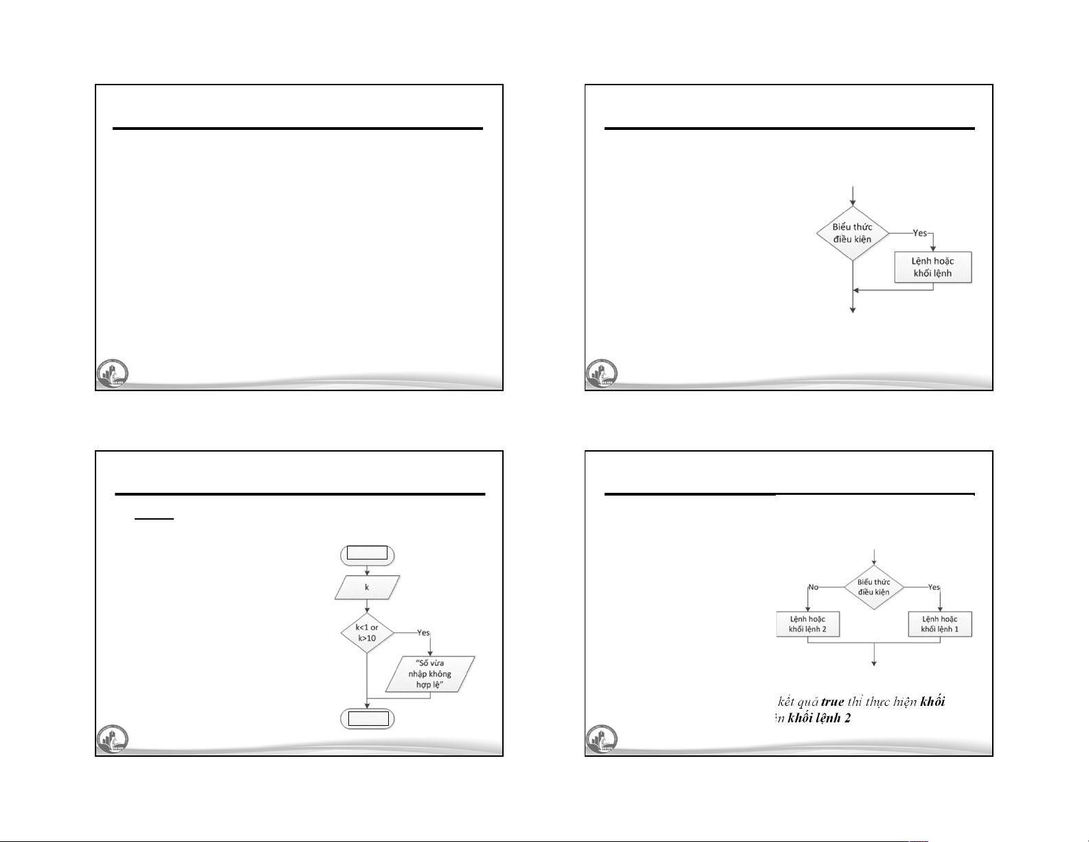 kết quả của biểu thức điều kiện. ; • Có hai dạng: }