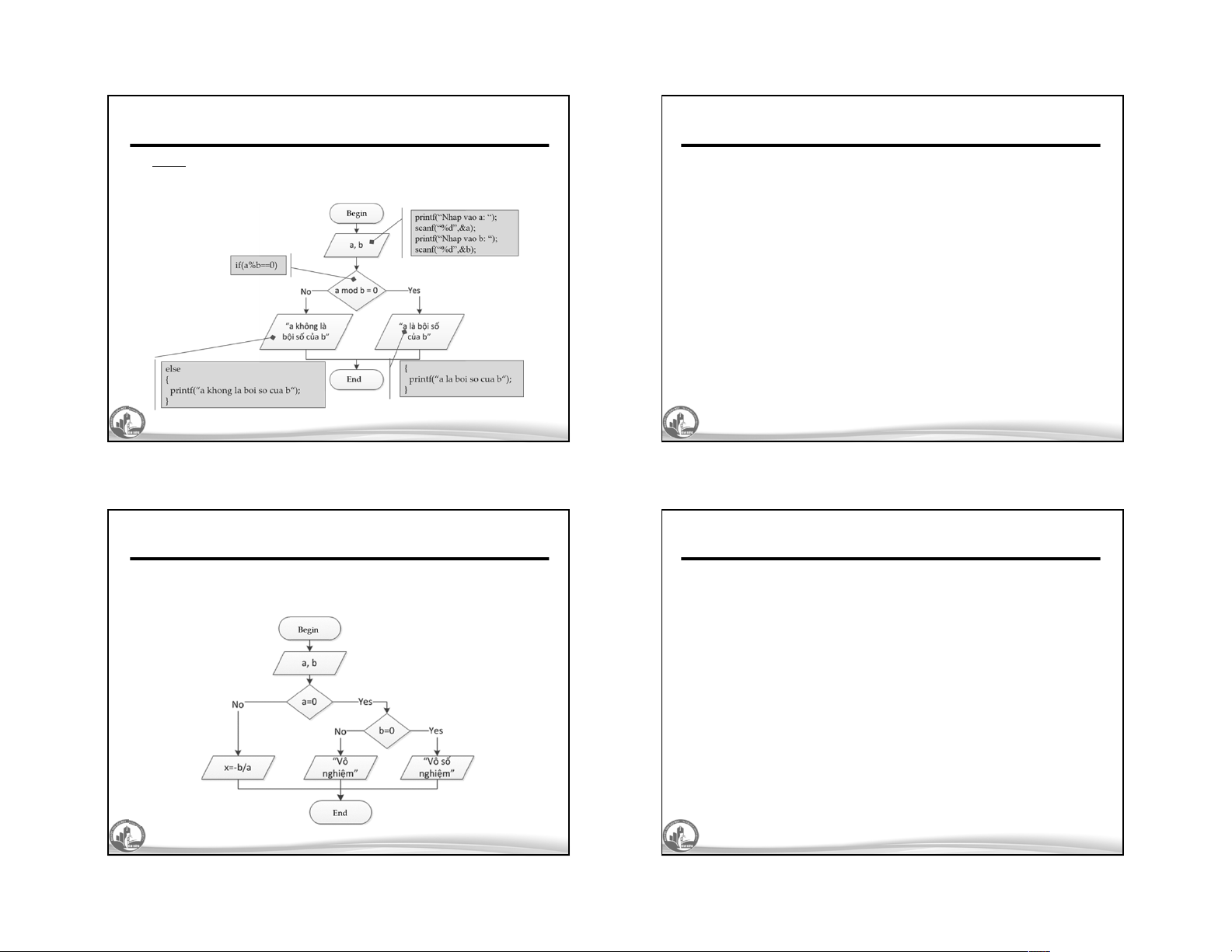 Ø Ví dụ: Nhập vào số nguyên a và b, nếu a là bội số của b