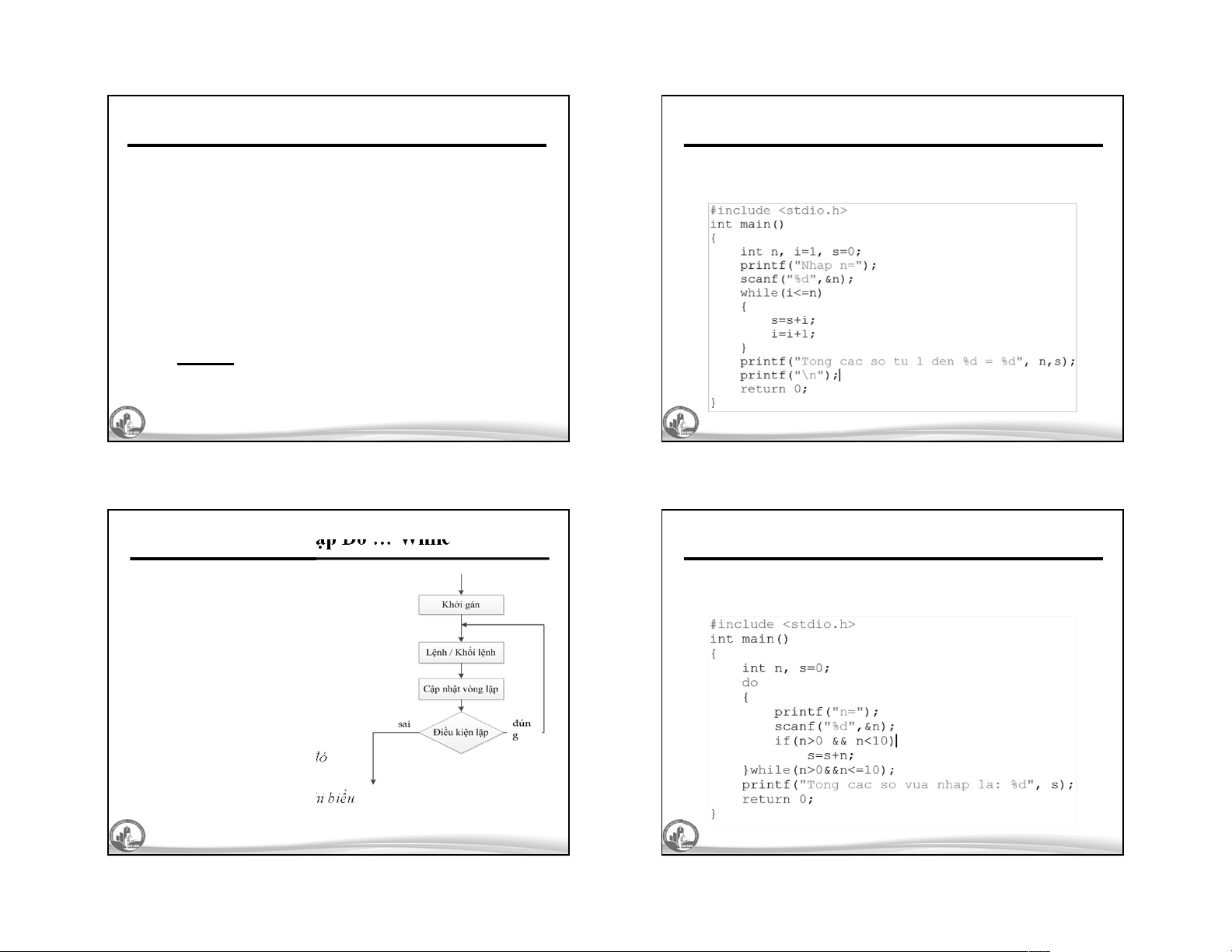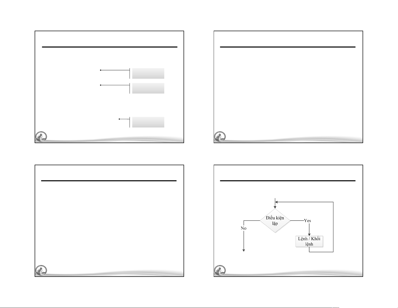 – Điều kiện lặp: kiểm tra điều kiện thực hiện vòng lặp