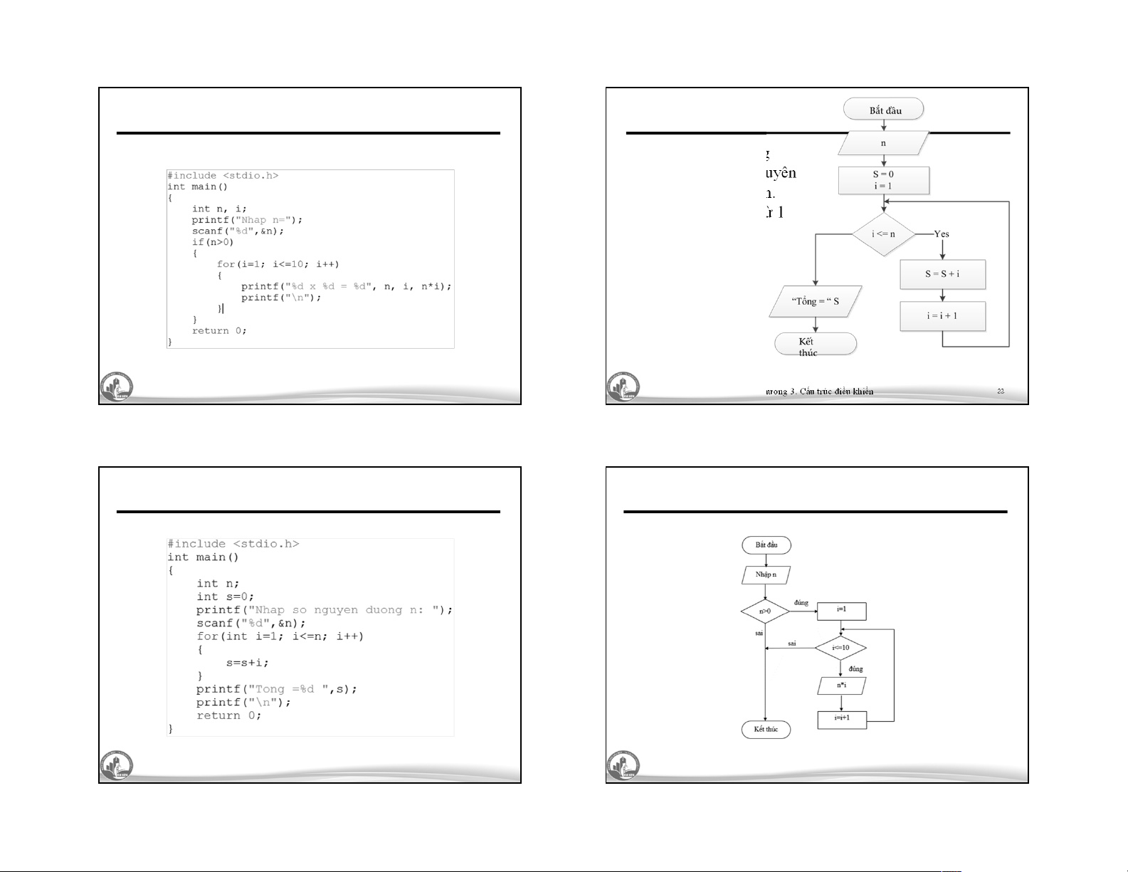 Chương 3. Cấu trúc điều khiển 22 21 22 Cấu trúc lặp For Cấu trúc lặp For 23 24 23 24 6 10/26/2025 Cấu trúc lặp - While