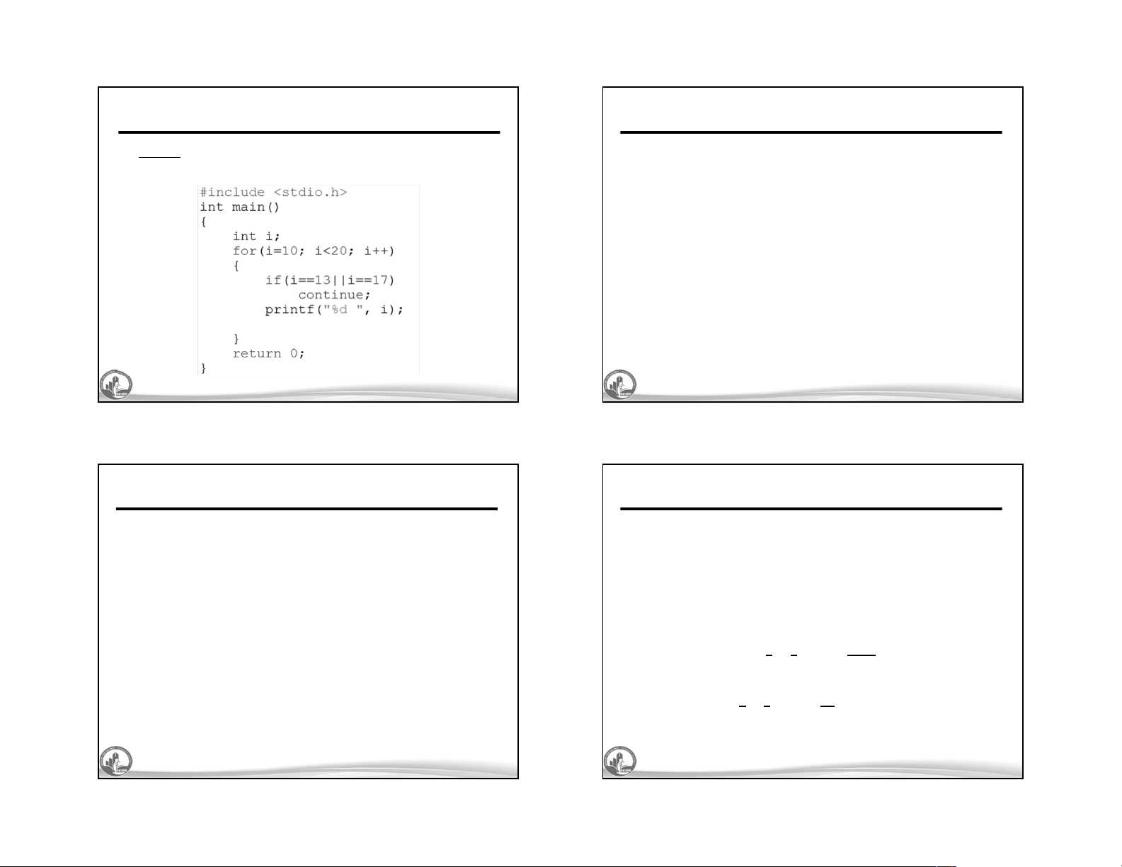 • Khi lệnh continue được gọi thì chương