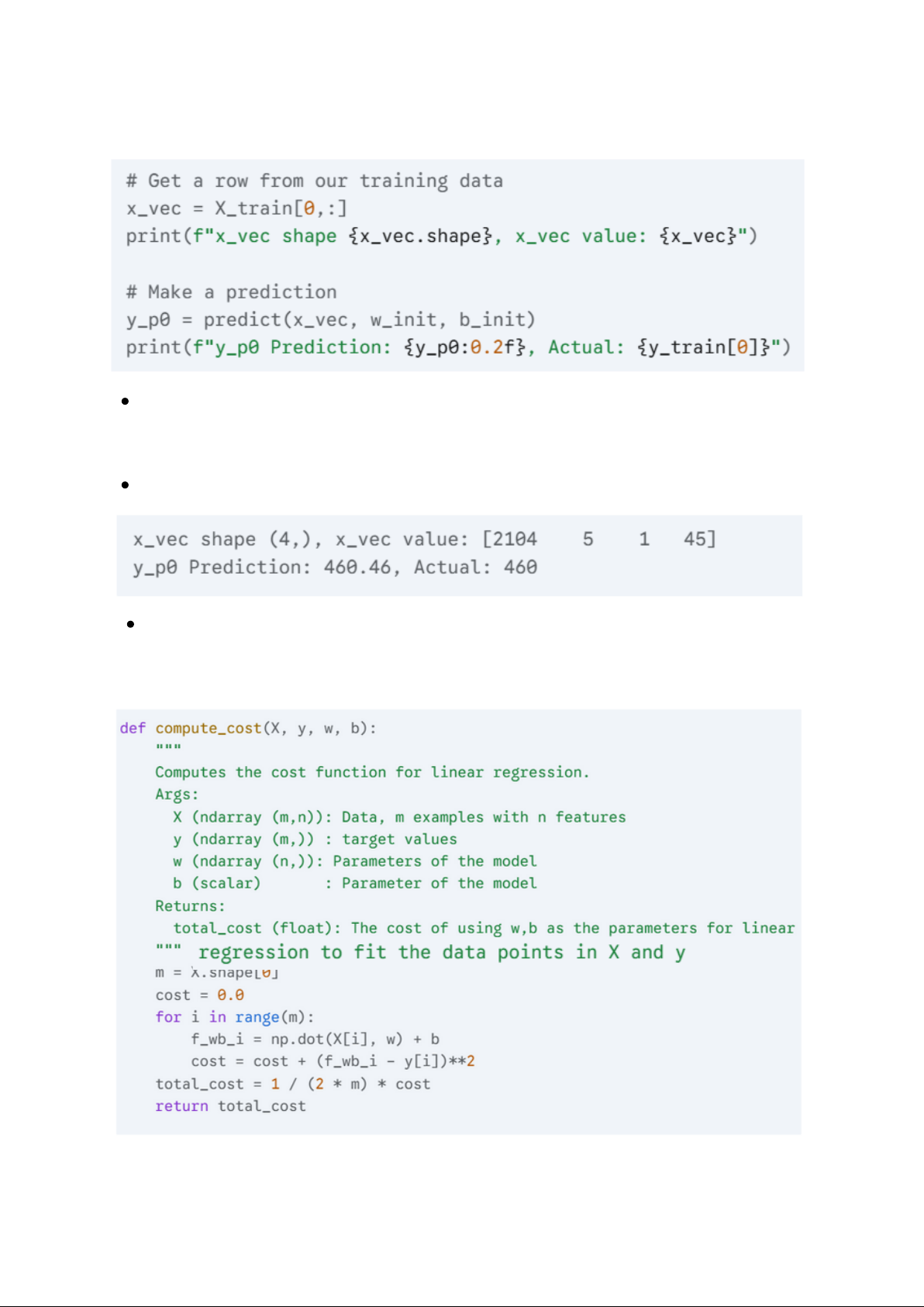 Chức năng chính: Định nghĩa hàm compute_cost để tính hàm chi phí