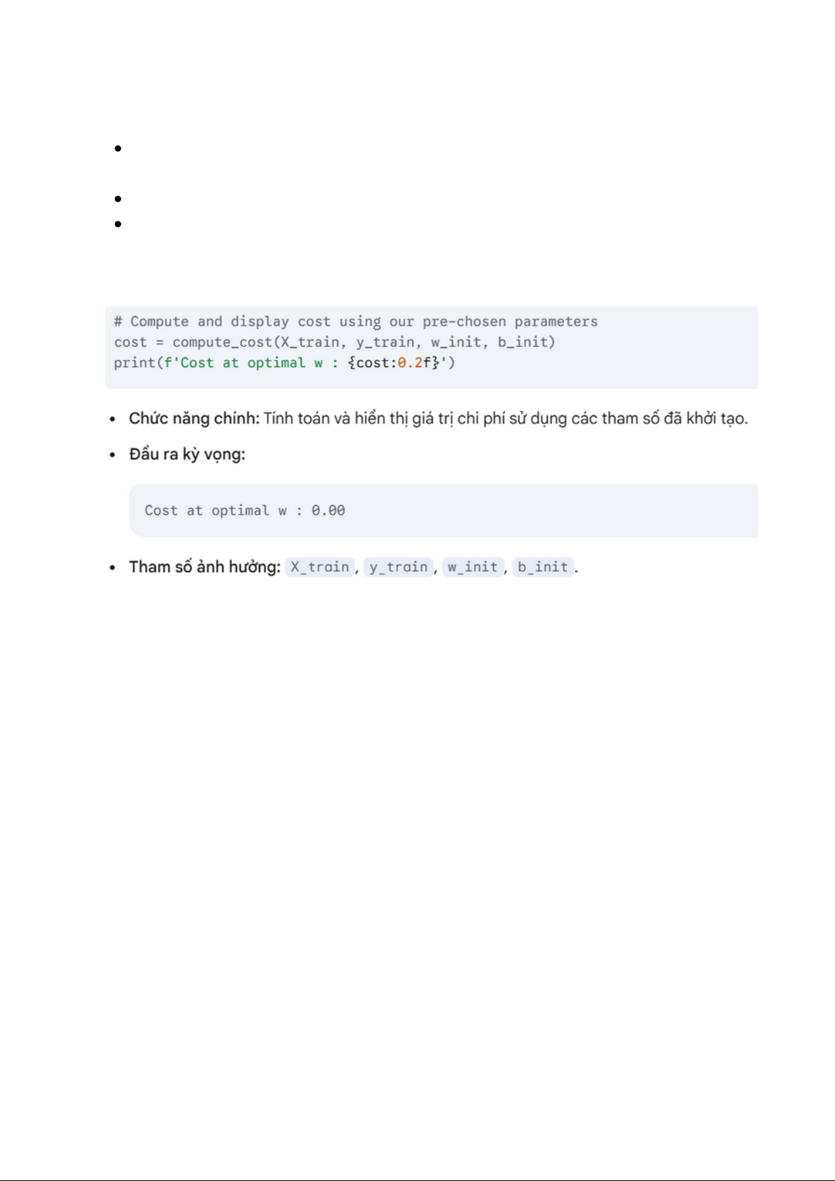 Tham số ảnh hưởng: X_train, w_init, b_init. Mã lệnh 07: 19