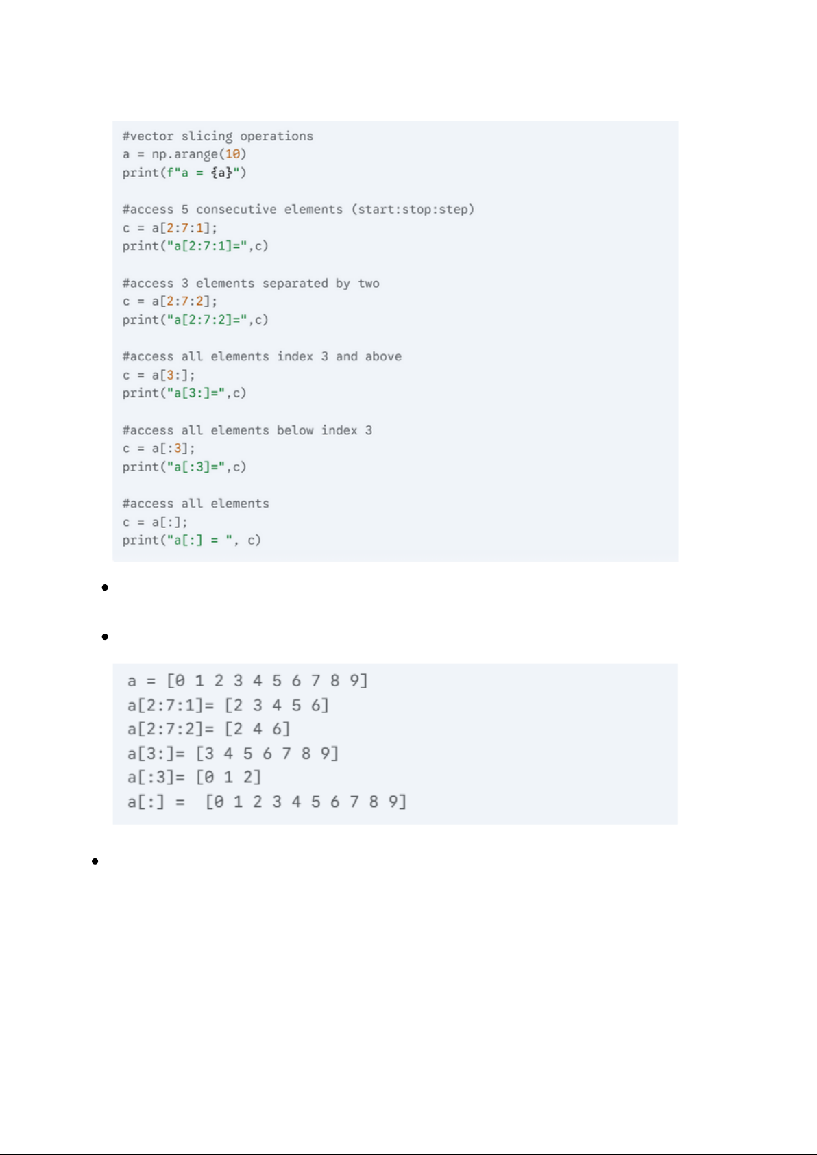 Chức năng chính: Cắt lát (slicing) vector 1 chiều bằng cú pháp start:stop:step. Đầu ra kỳ vọng: