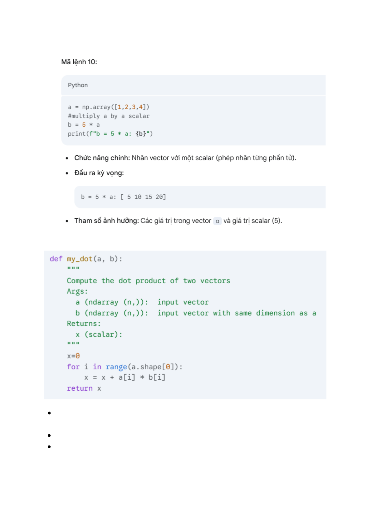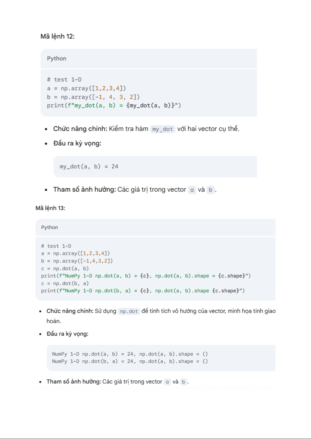 Tham số ảnh hưởng: Các mảng đầu vào x, w và scalar b. 18 Mã lệnh 06:
