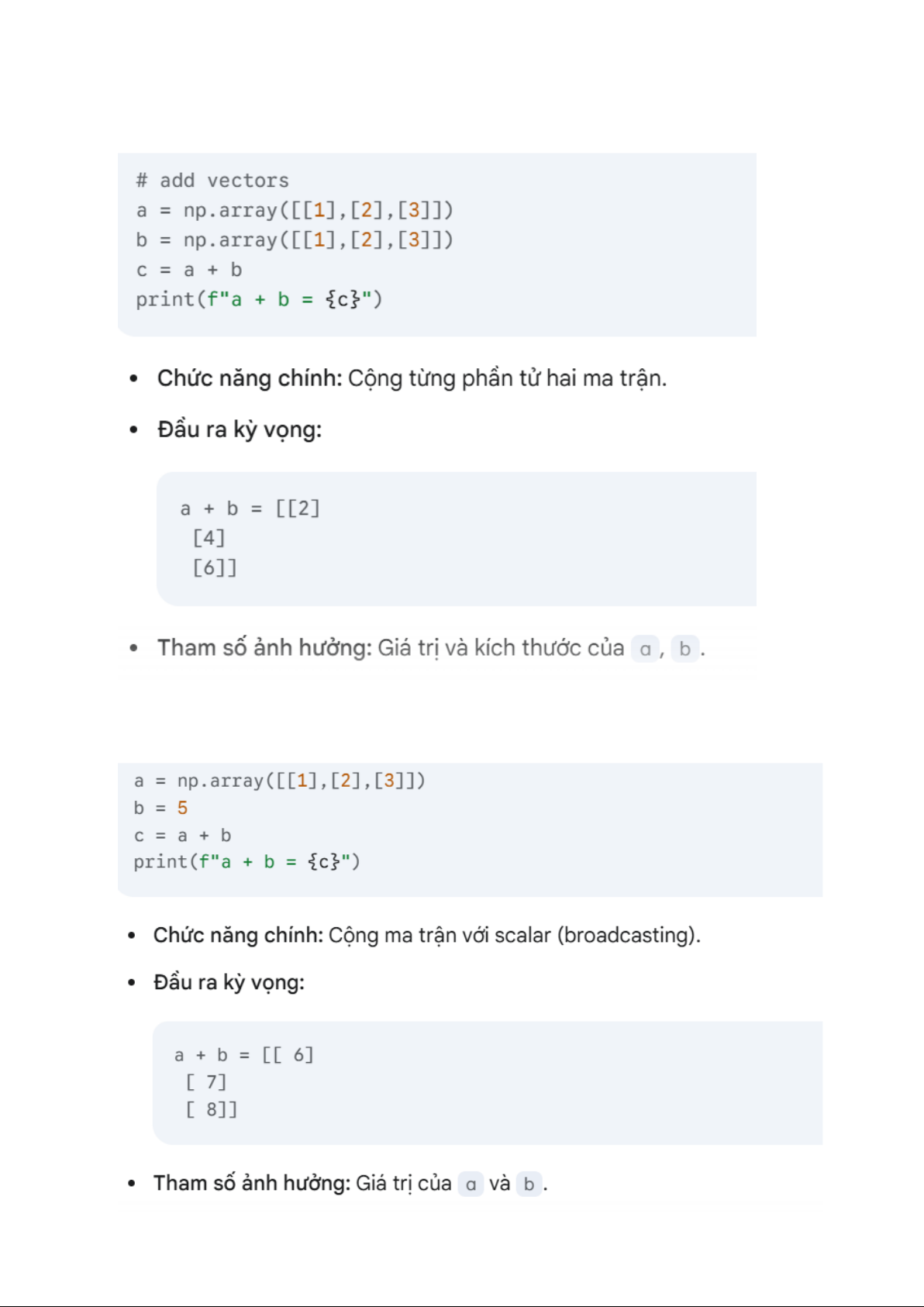 định, tổng, trung bình, bình phương từng phần tử). Đầu ra kỳ vọng