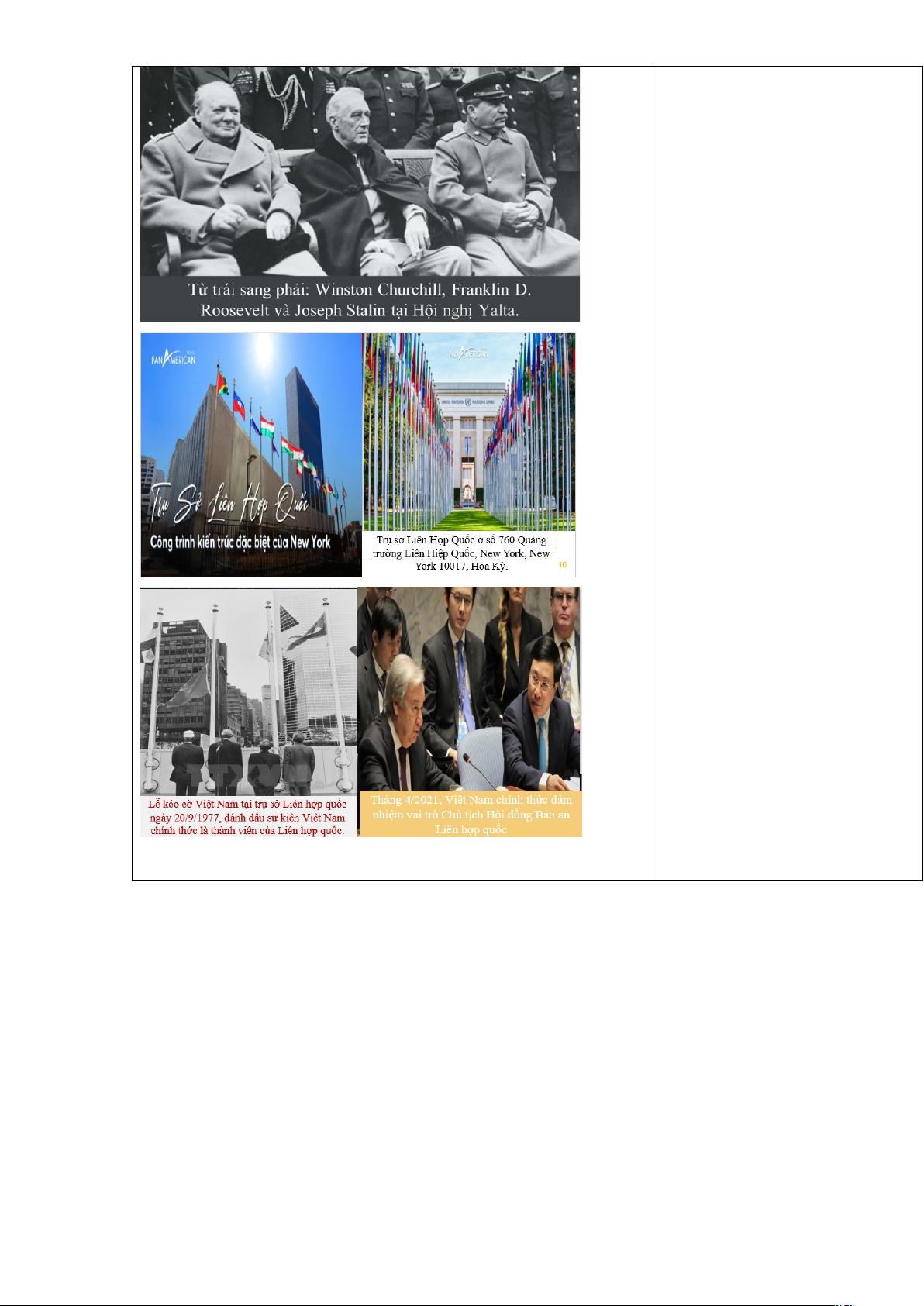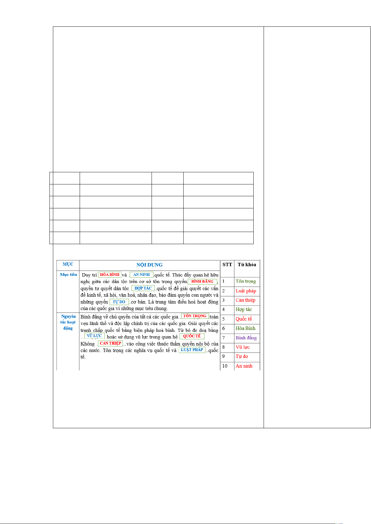 a. Mục tiêu: - Nêu được bối cảnh lịch sử và quá trình hình thành Liên hợp quốc; Trình bày được mục tiêu và nguyên tắc hoạt động cơ bản của Liên hợp quốc;