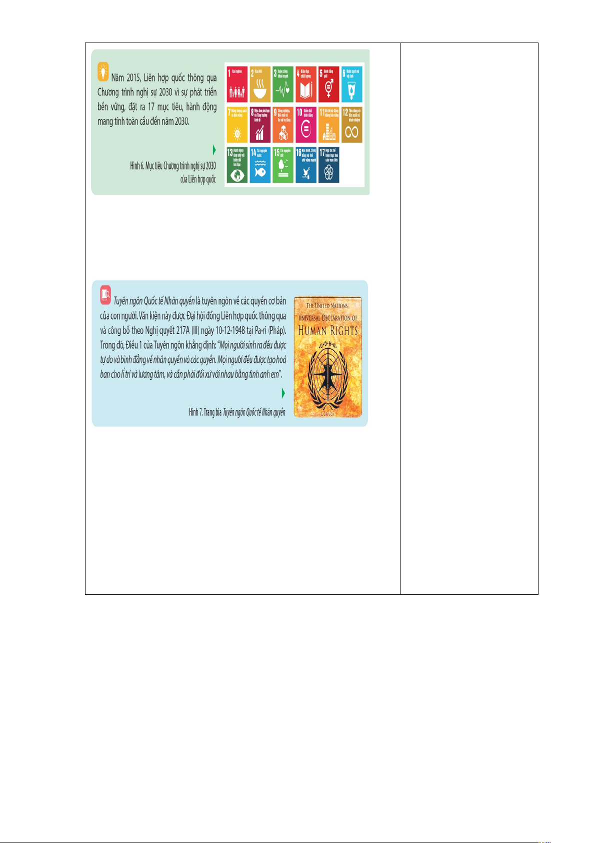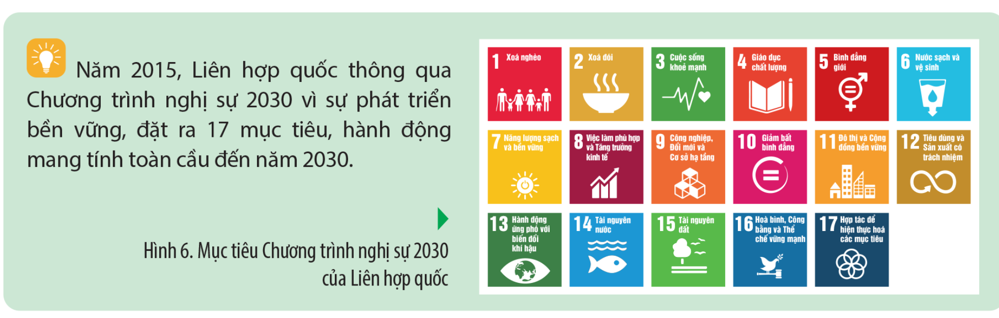 - Trình bày được vai trò của Liên hợp quốc trong lĩnh vực thúc đẩy phát triển, tạo môi trường thuận lợi để phát triển kinh tế, tài chính, thương mại quốc tế, nâng cao đời sống người dân; trong việc bảo đảm quyền con người, phát triển văn hoá, xã hội