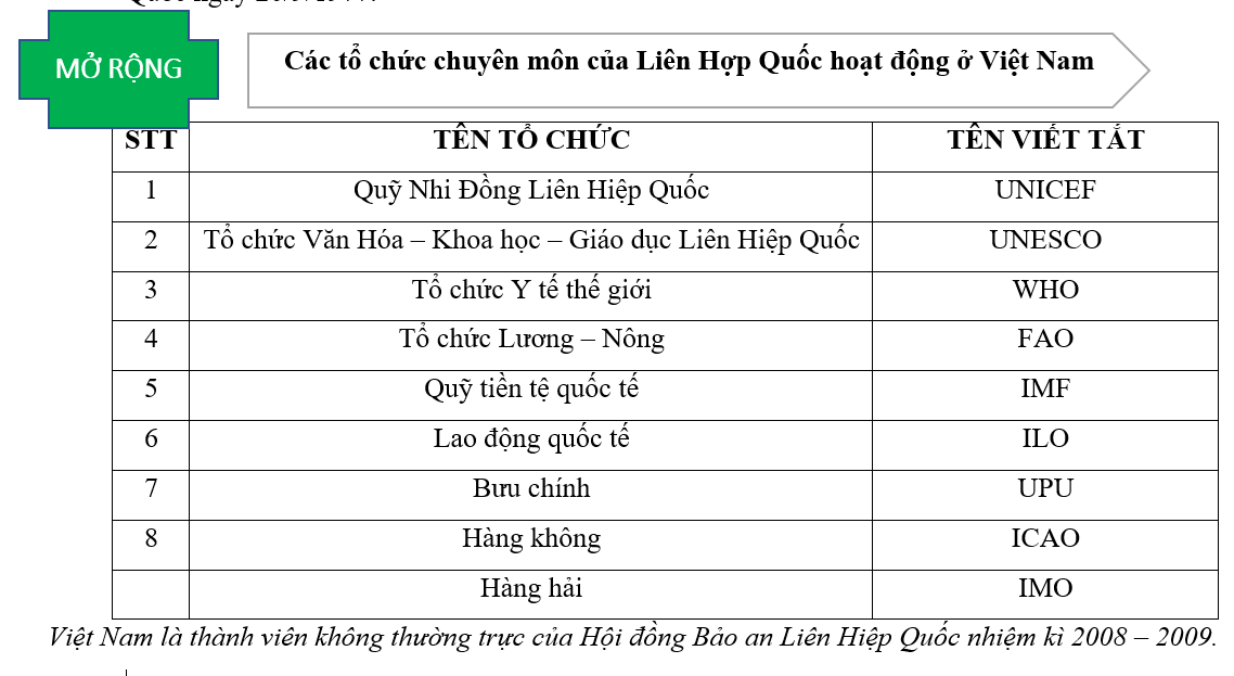 Sưu tầm tư liệu về một số cơ quan chuyên môn của liên hợp quốc hoạt động tại Việt Nam. giới thiệu tư liệu đó với thầy cô và bạn học