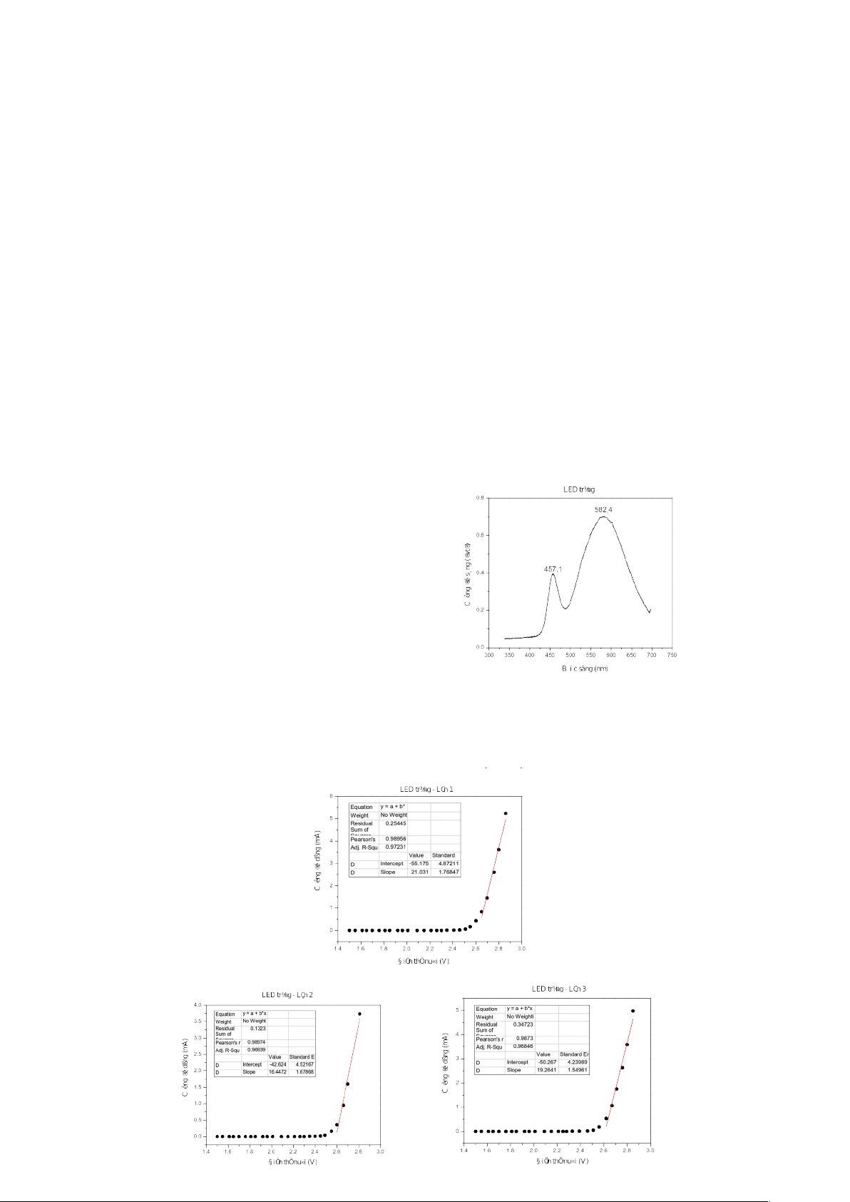 của chíp LED, từ đồ thị trên hình 10 ta xác định được = 457,1 nm. Hình 11 cho thấy, ba