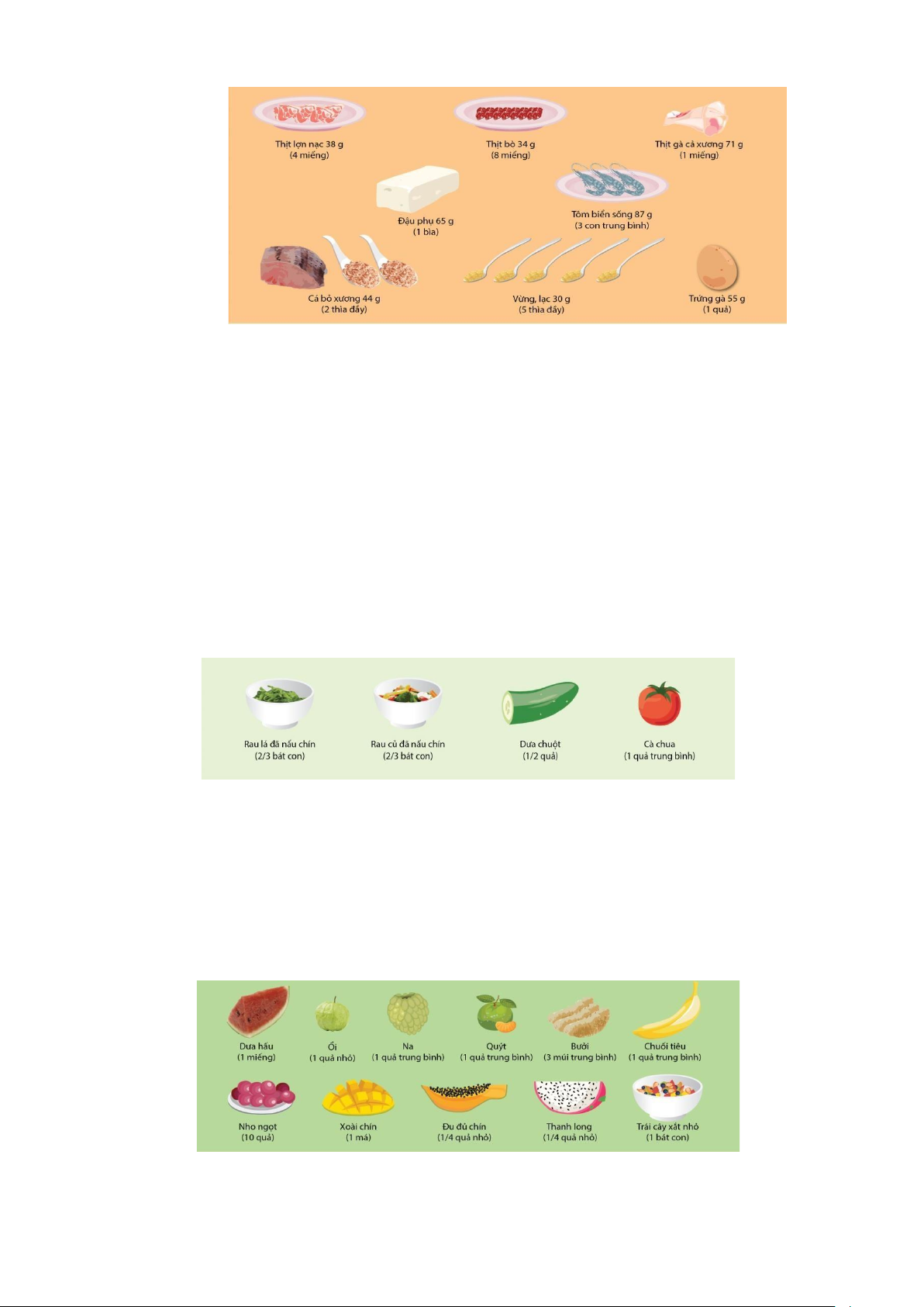 Mỗi ơn vị thịt/ thủy sản/ trứng/ ậu ỗ cung cấp 7 g protein và tương ương với: 4 miếng thịt lợn nạc.