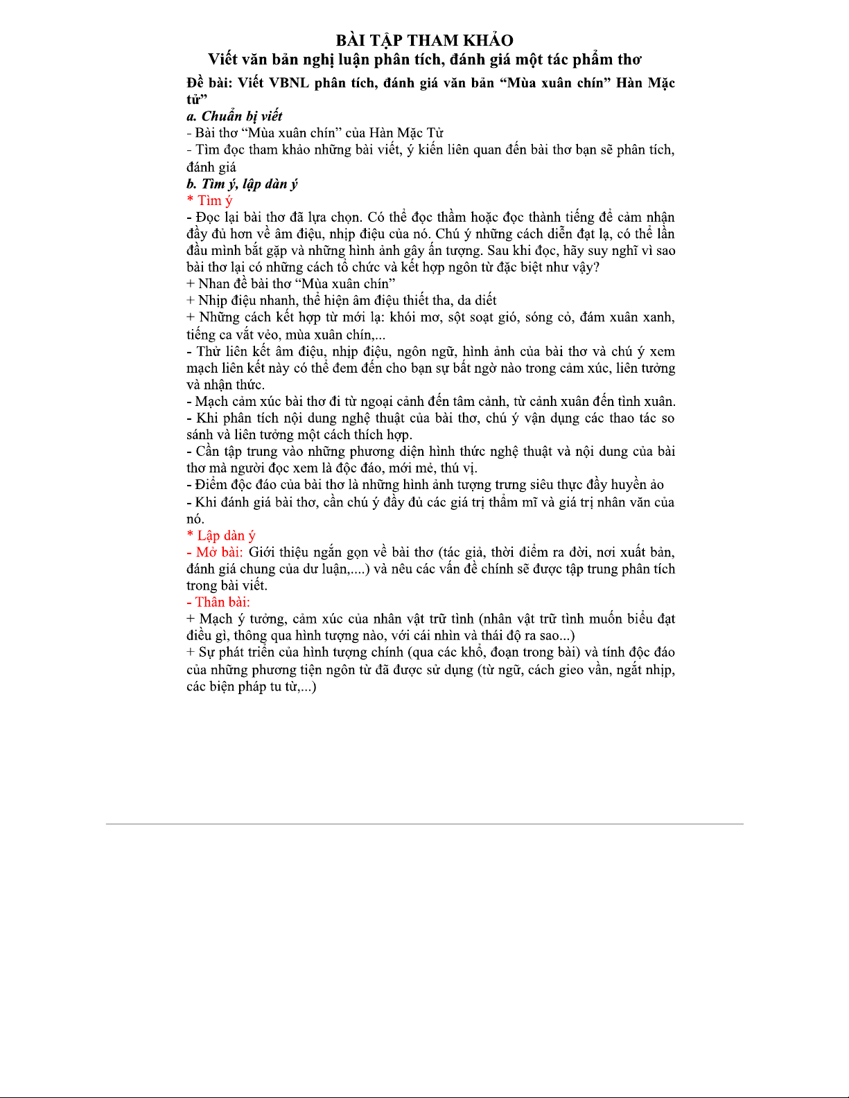Tài liệu tham khảo bài văn nghị luận về thơ "Mùa xuân chín" (DAN Y VA BAI VIET)