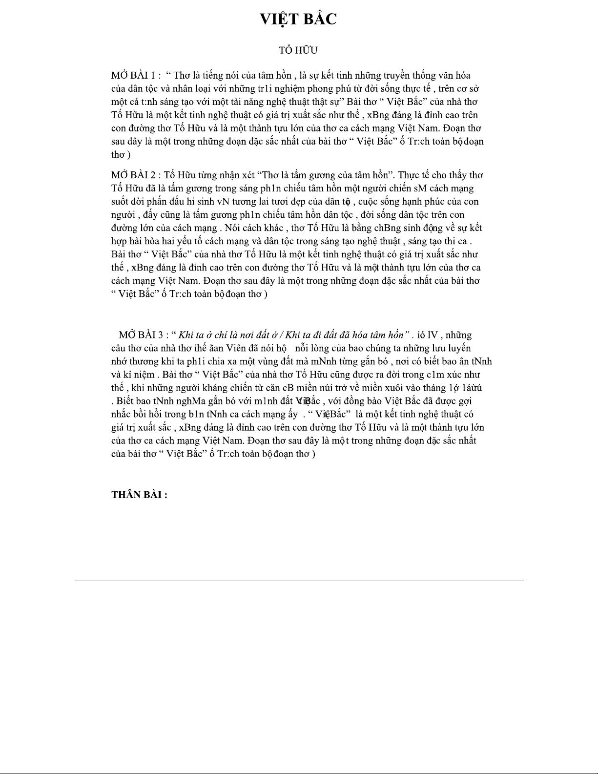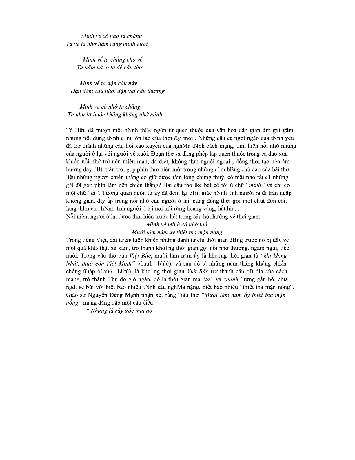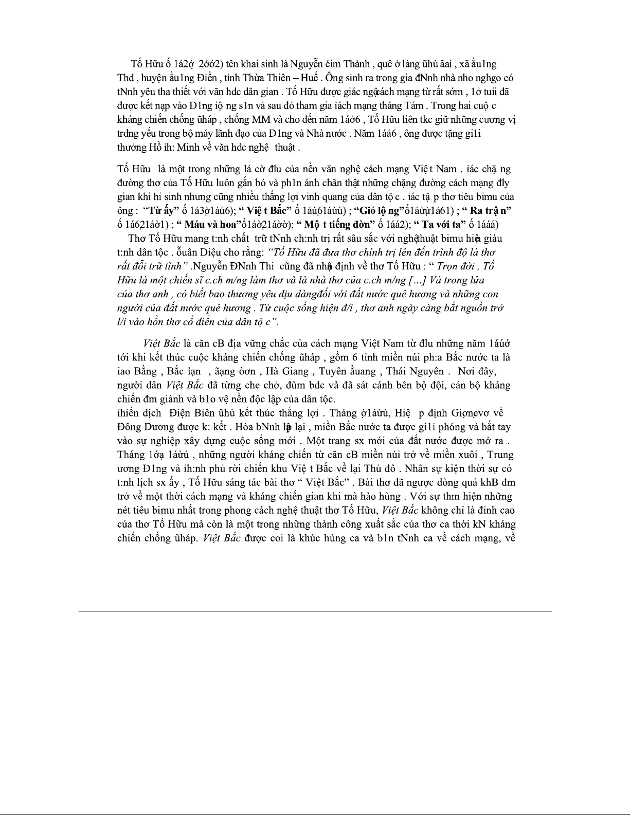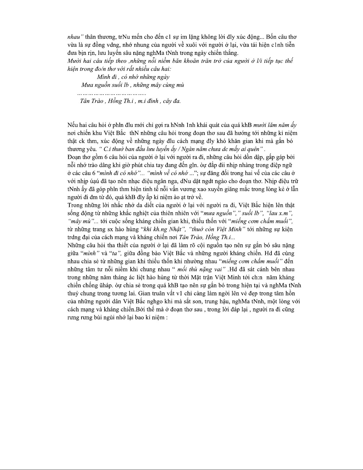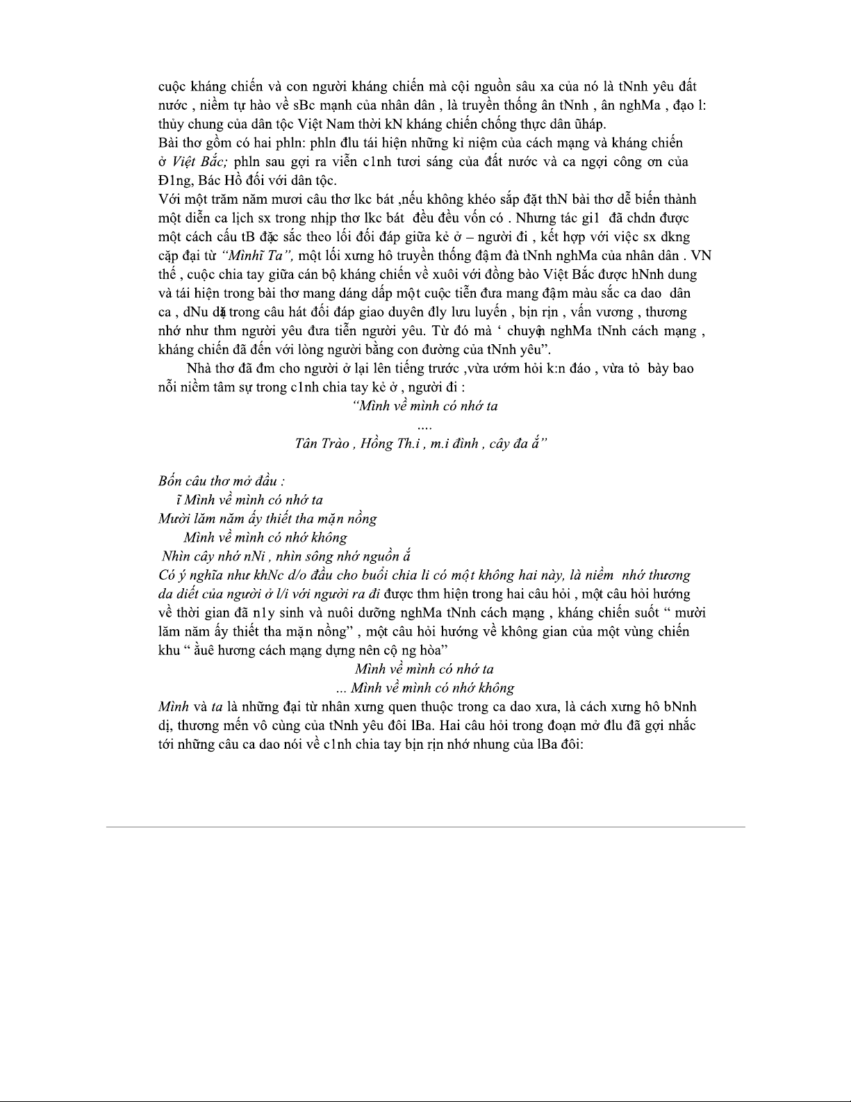 Tài liệu tham khảo thơ "Việt Bắc" - Đoạn phân tích Tố Hữu