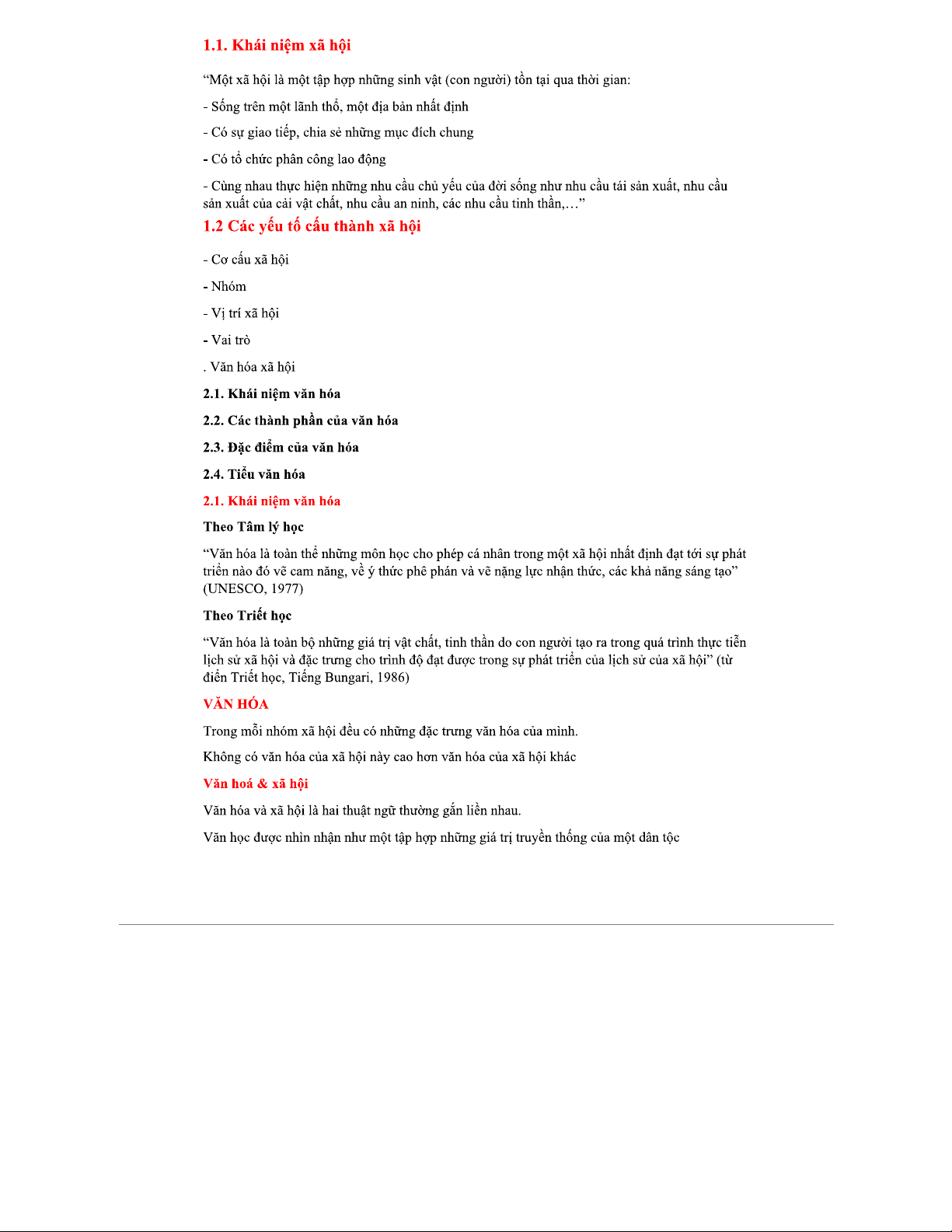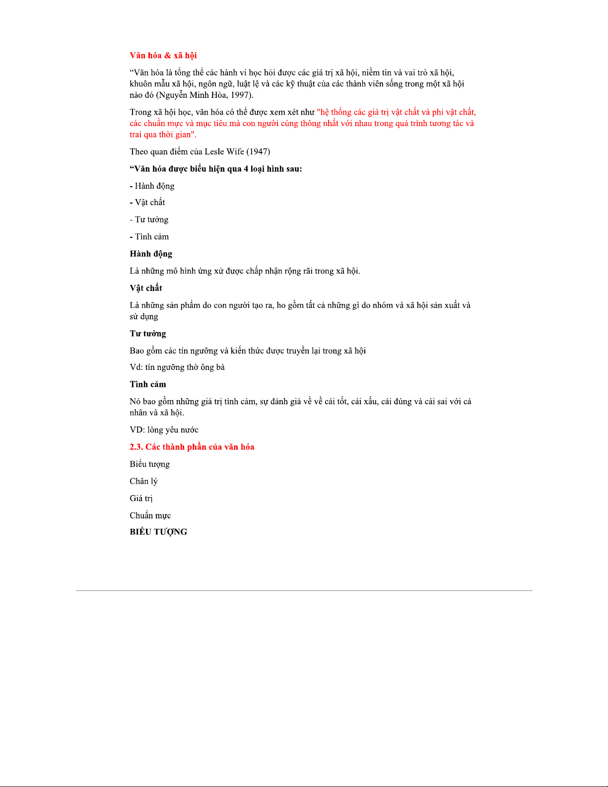 Tài liệu tham khảo về Văn hóa XH: Khái niệm và Thành phần cơ bản