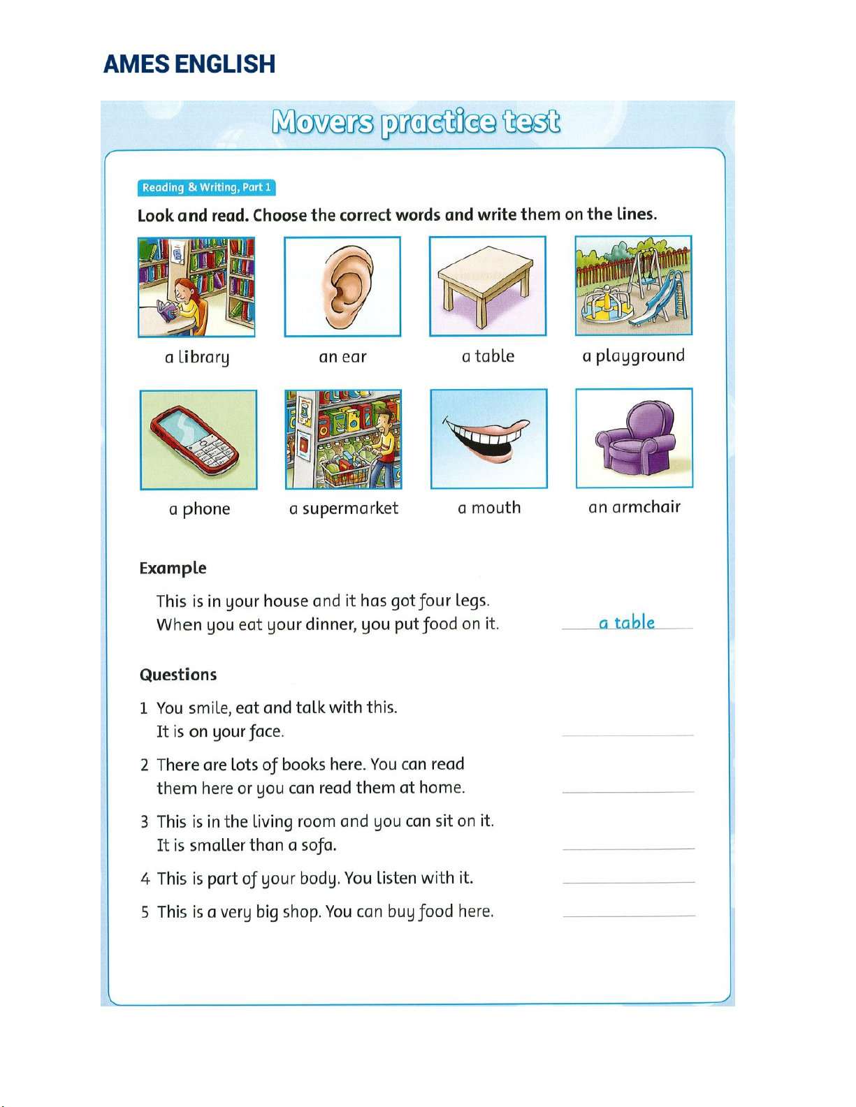 MOVERS 2 – DAY 26 – HANDOUT 1. Look and complete.