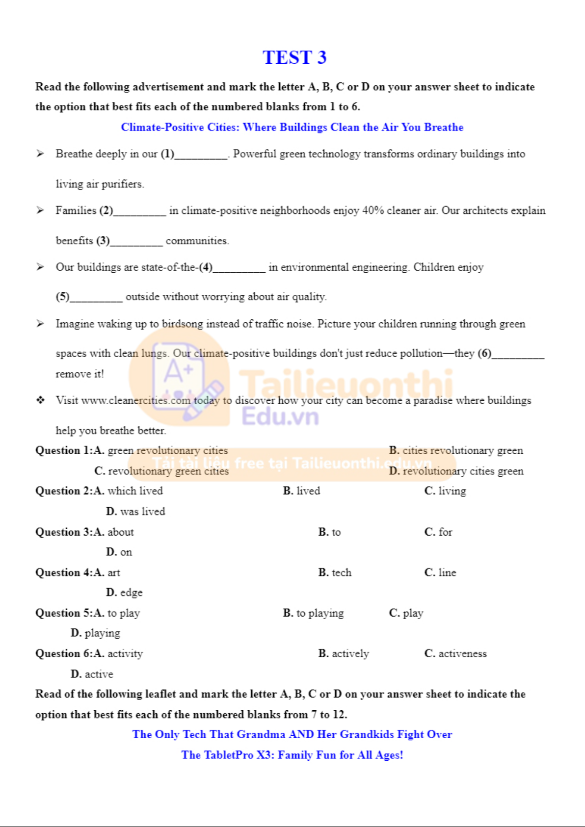 Tài liệu tiếng anh sưu tàm. Test 3