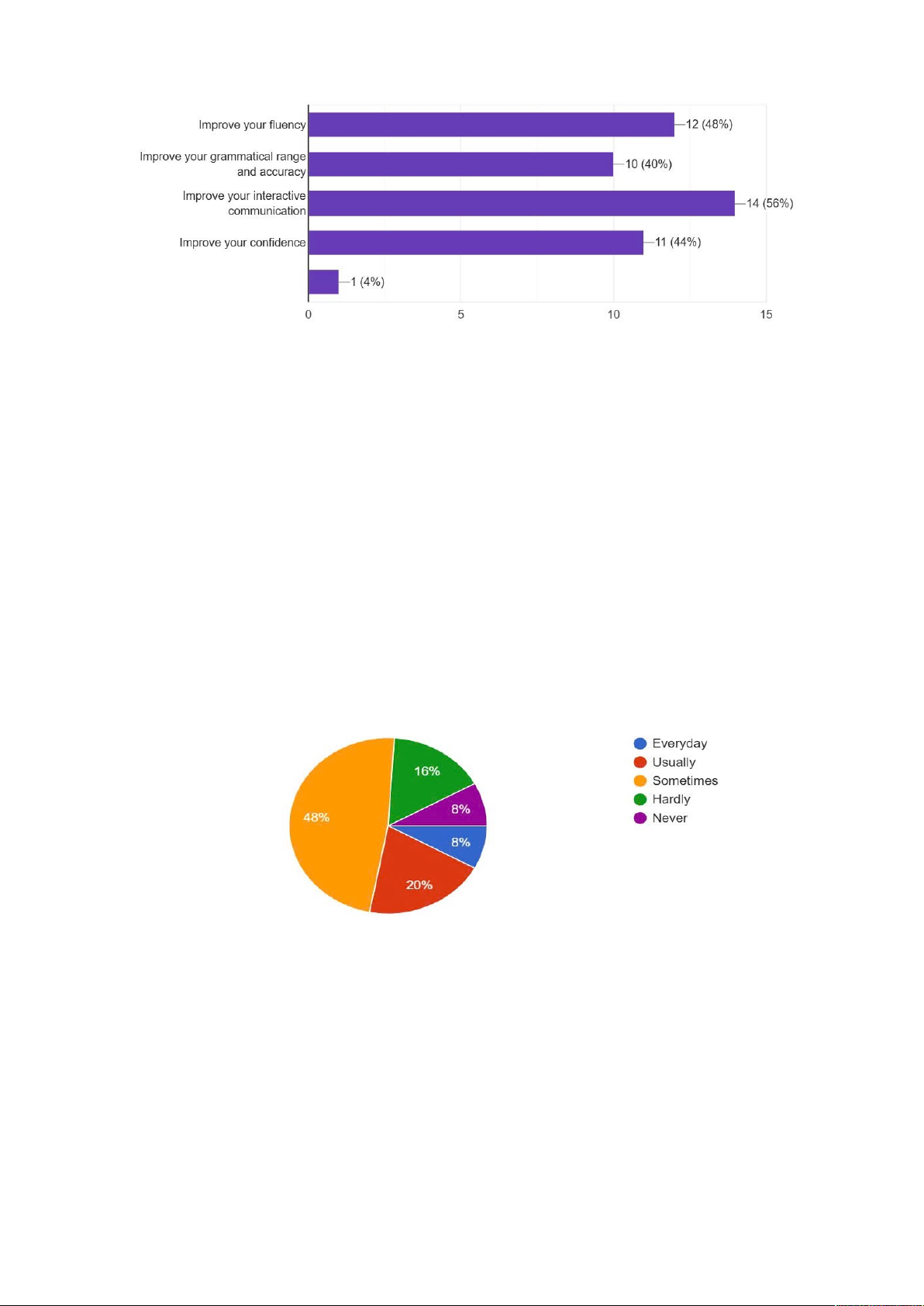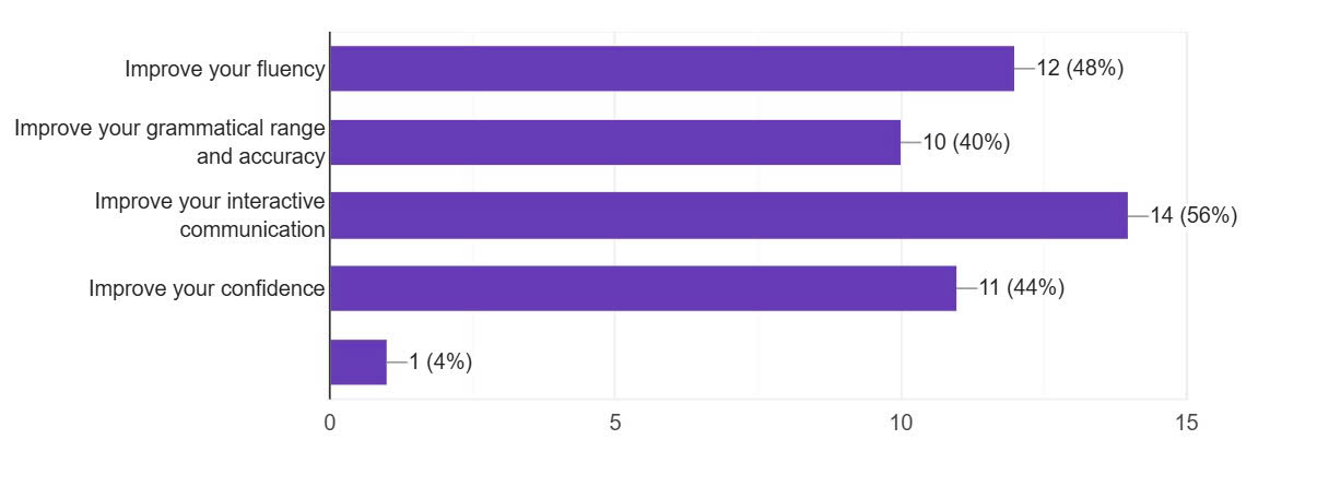 In addition, more than half of the respondents believe that shadowing helps enhance their ability to engage in interactive communication, indicating its effectiveness in promoting active participation in spoken interactions. Nearly half of the respondents recognize the shadowing technique's contribution to enhancing both the range and accuracy of their grammar usage, which are crucial components of effective communication. Remarkably, a significant portion (48%) acknowledge that shadowing helps improve their fluency.