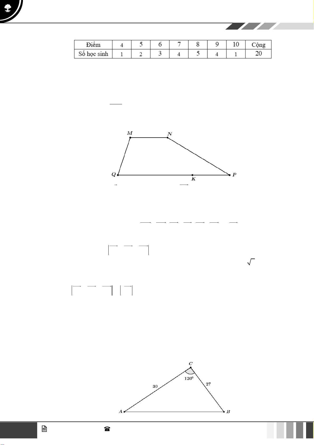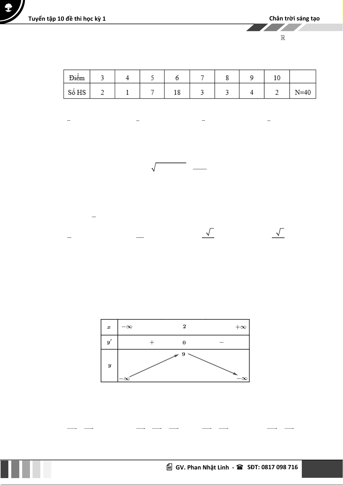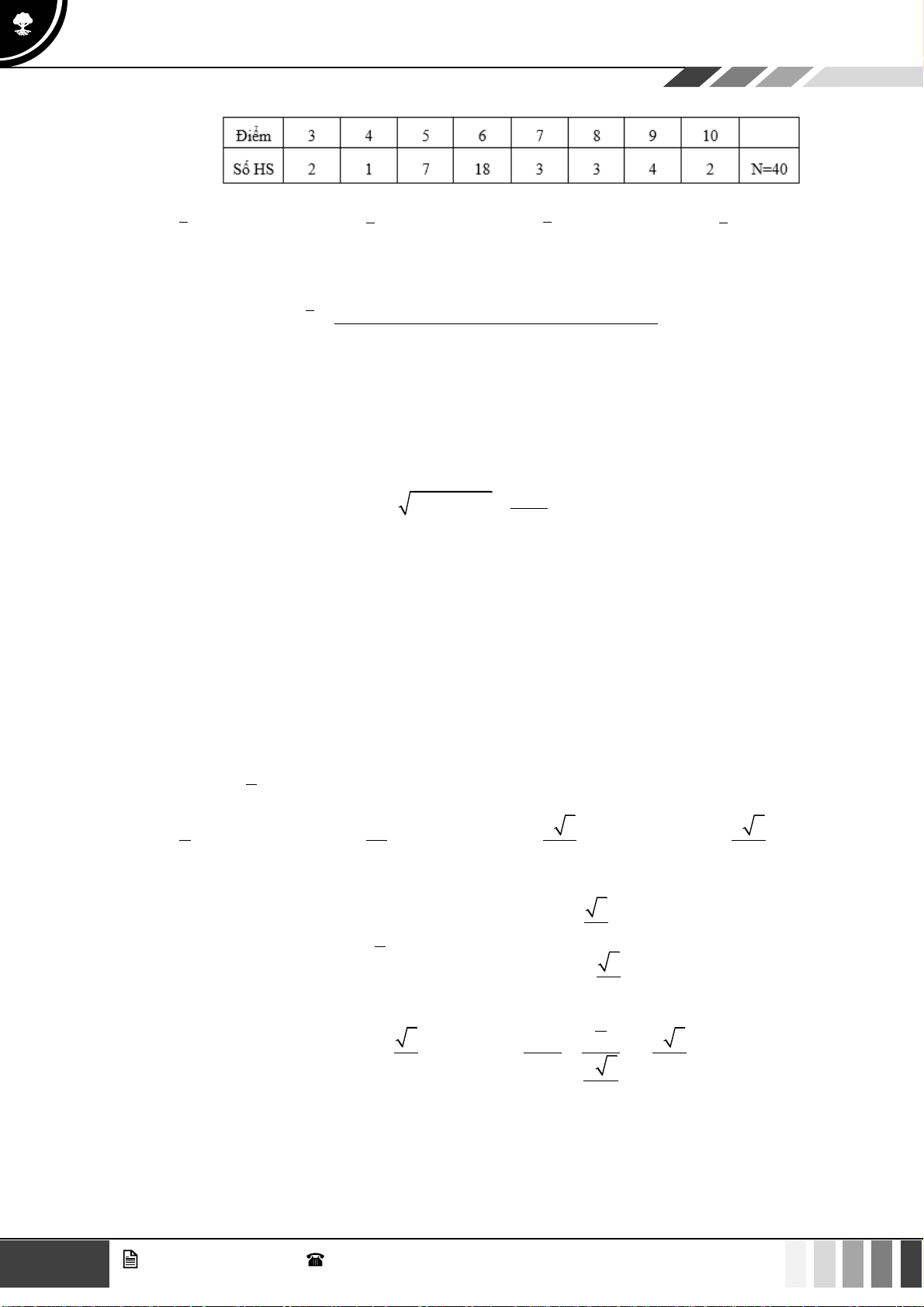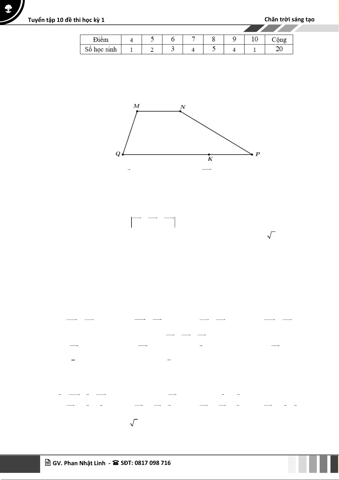 Câu 16: Cho bảng số liệu điểm kiểm tra môn Toán của 20 học sinh. 2 GV. Phan Nhật Linh - SĐT: 0817 098 716