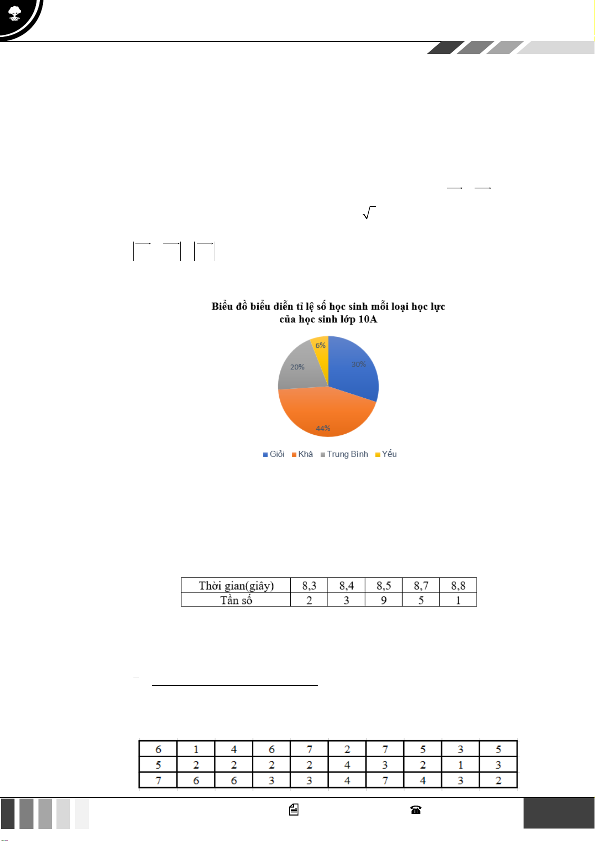 Câu 30: Thời gian chạy 50m của 20 học sinh được ghi lại trong bảng dưới đây: