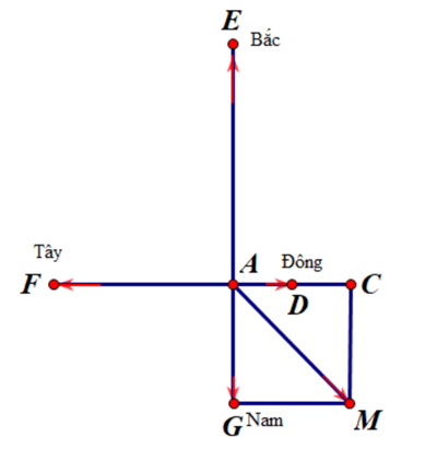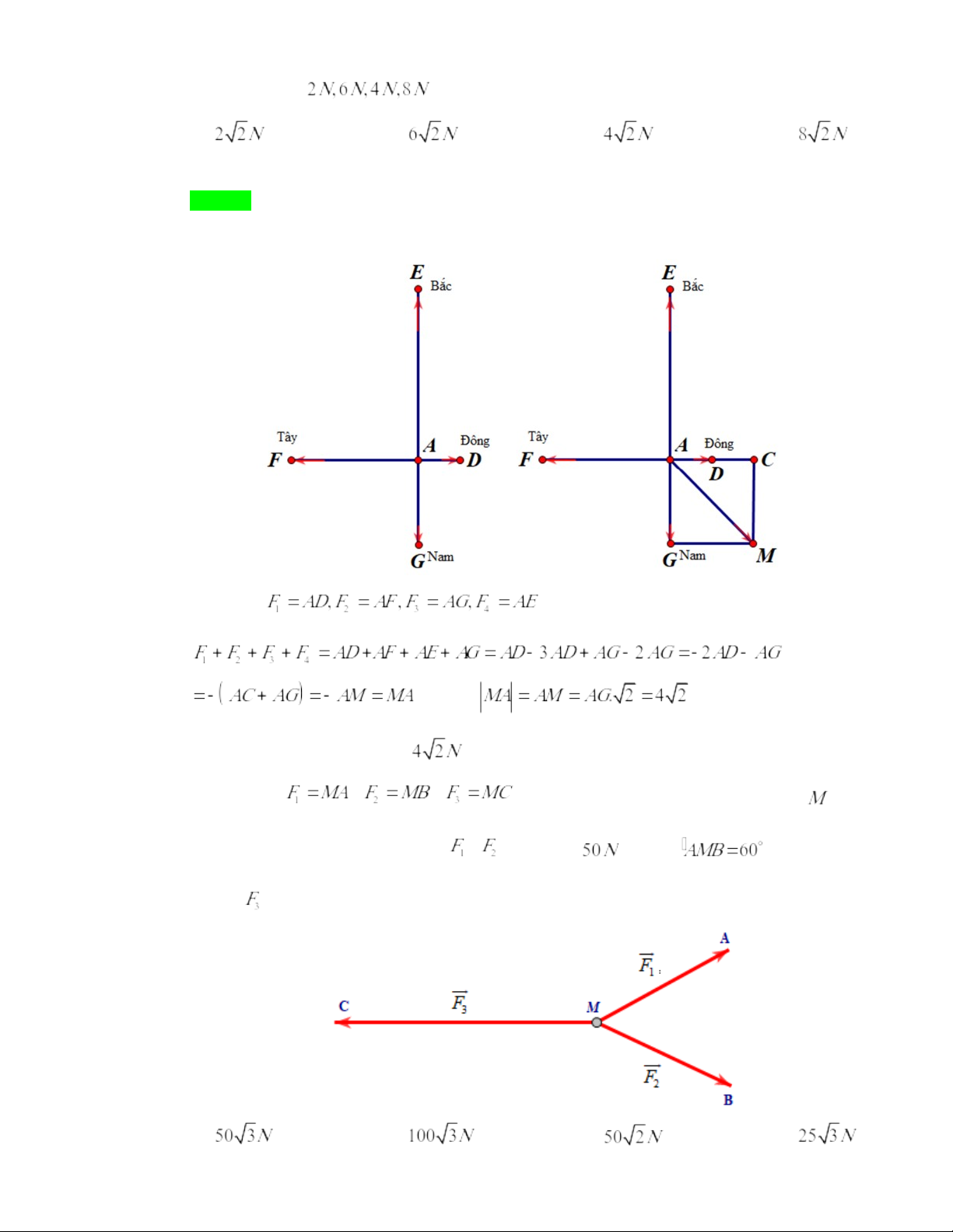 Câu 14: Một chất điểm bị tác động bởi bốn lực lần lượt có hướng là Đông, Tây, Nam, Bắc và lần lượt có cường độ là . Tính cường độ của hợp lực tác động lên chất điểm nói trên.