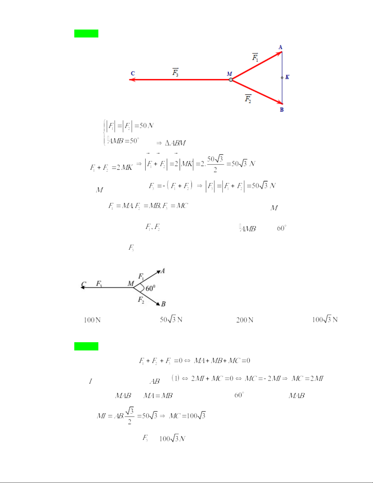 Câu 12: Cho ba lực cùng tác động vào một vật tại điểm